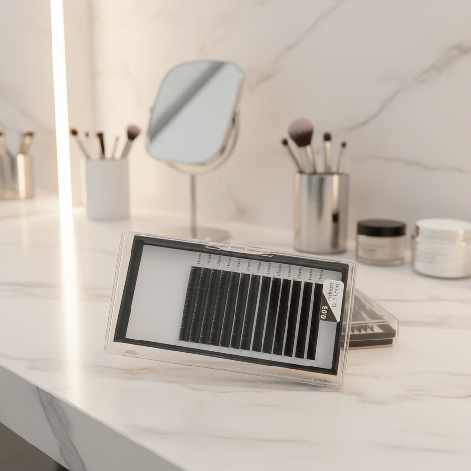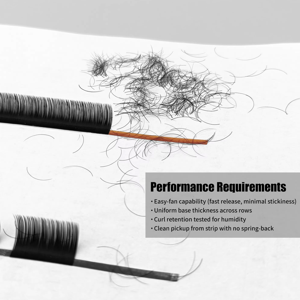 ขนตาปลอมแบบพัดเร็ว 0.03 0.05 0.07 มม. เมกะวอลลุ่ม ติดง่าย แบรนด์ส่วนตัว สีดำด้าน ขนตาบานอัตโนมัติ วีแกน