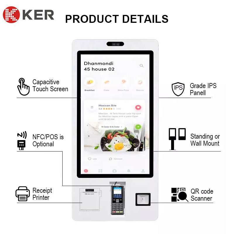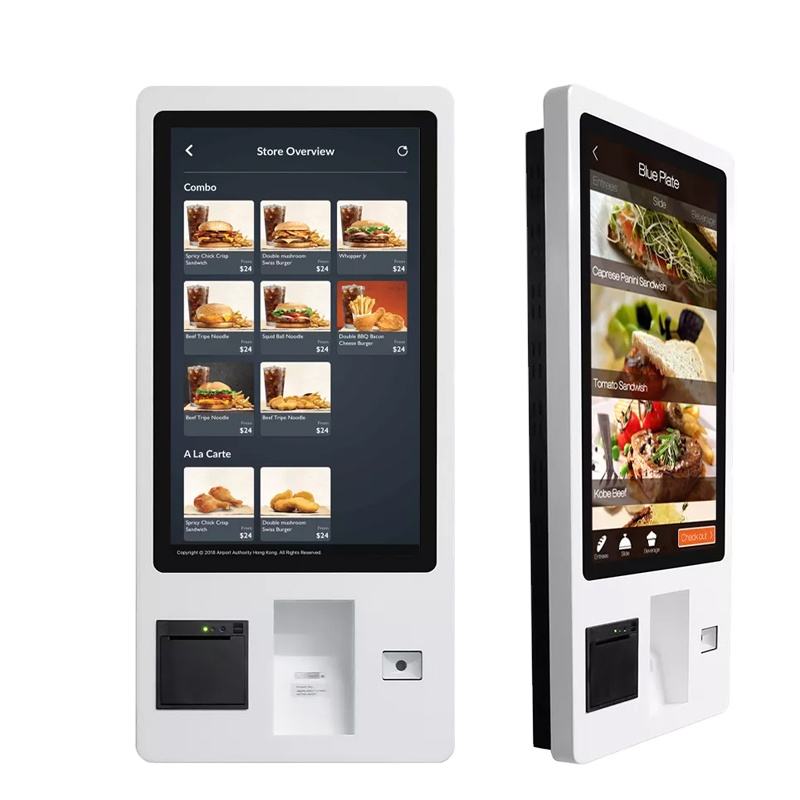 เครื่องรับออเดอร์และชำระเงินด้วยตนเองสำหรับร้านอาหารฟาสต์ฟู้ด พร้อมฟังก์ชัน SDK สำหรับคิออสก์ เครื่องอ่านบาร์โค้ด หน้าจอสัมผัส 10 จุด จอแสดงผล HD