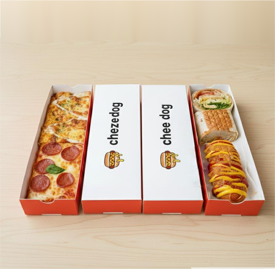 บรรจุภัณฑ์อาหารจานด่วนแบบนำกลับ กล่องกระดาษใส่แพนเค้กขนาดเล็ก ถาดใส่ซูชิ เครป บราวน์ บาร์บีคิว คุกกี้ เบเกอรี่ วาฟเฟิลสติ๊ก