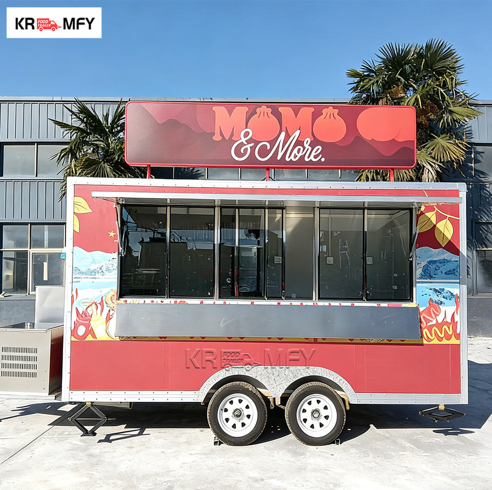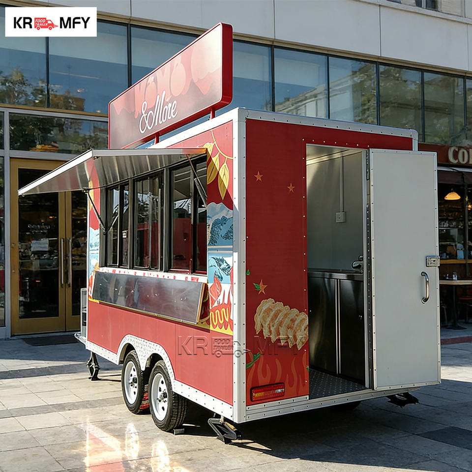 รถพ่วงขายอาหารเคลื่อนที่อเนกประสงค์สำหรับใช้งานกลางแจ้ง พร้อมอ่างล้างจานในครัวที่ได้รับการรับรองมาตรฐาน CE ครบครันสำหรับขายขนมขบเคี้ยว ลูกอม และมันฝรั่งทอด