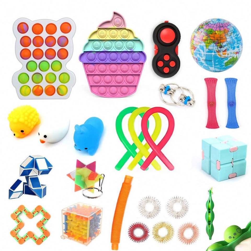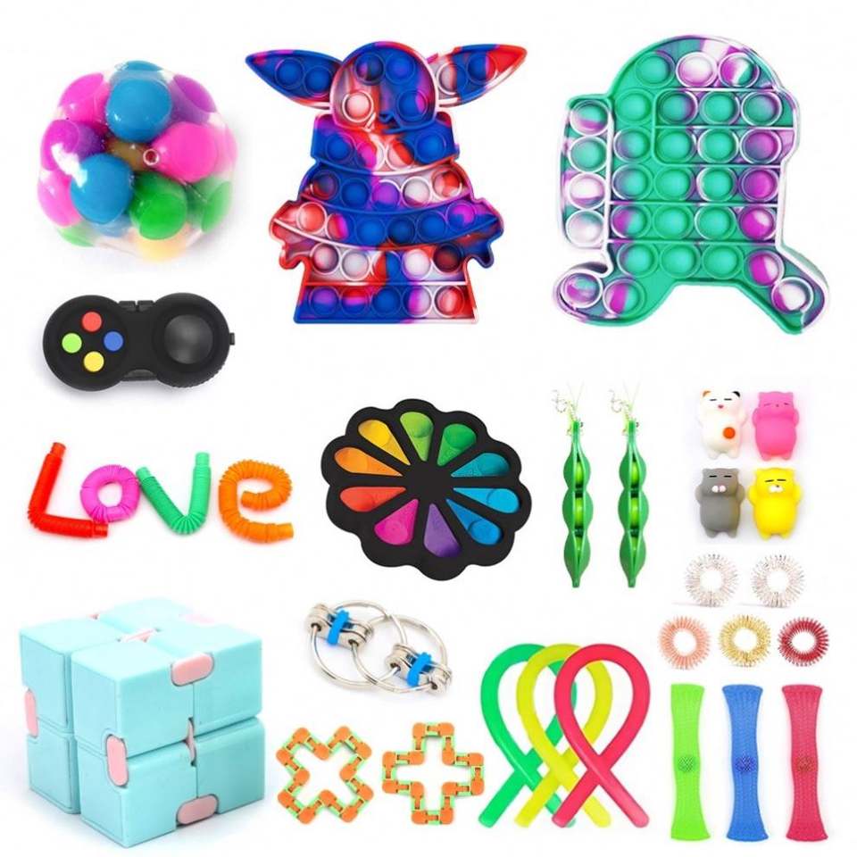 ชุดของเล่นบรรเทาความเครียดแบบฟองสบู่ Fast Packaging 0068 ชุดฟิดเจ็ตสปินเนอร์ ชุดป๊อปอิท กล่องสุ่ม ของเล่นฟิดเจ็ต ยาง พลาสติก