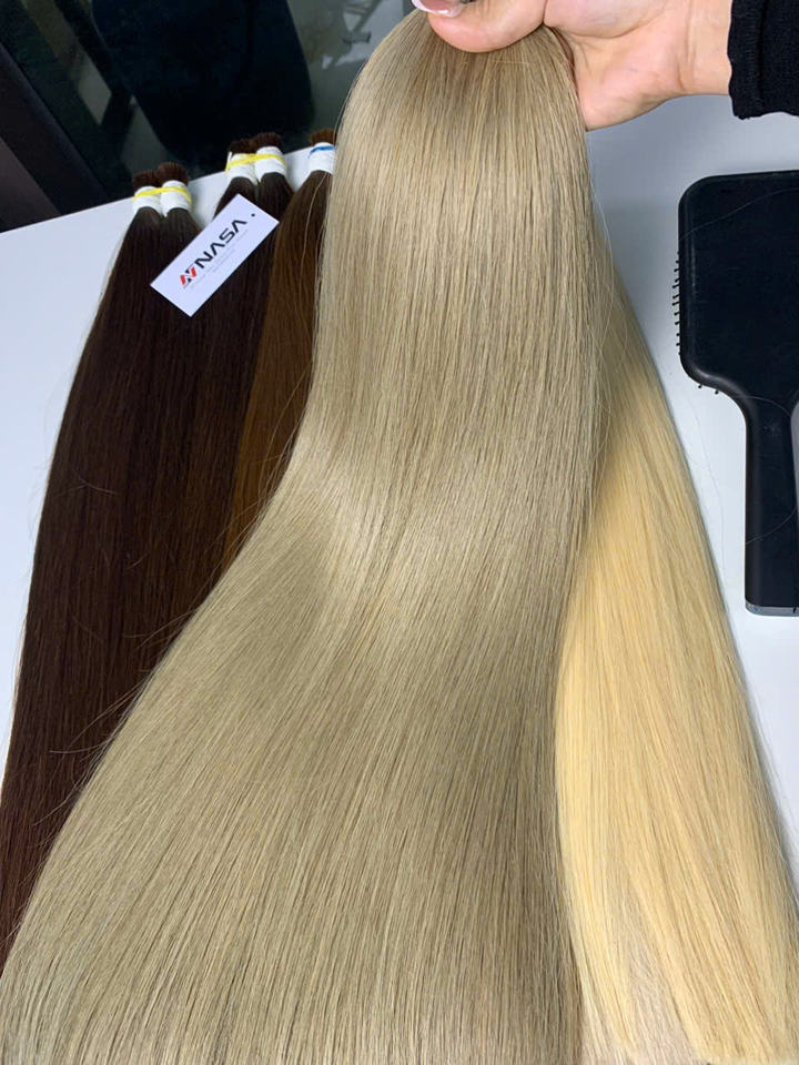 จัดส่งรวดเร็ว ผมแท้เวียดนามแบบตรงและแบบลอนธรรมชาติ น้ำหนัก 100 กรัม แบบเวอร์จิ้น เรมี่ ต่อผมแบบเครื่องจักรเย็บสองชั้น ทุกสี