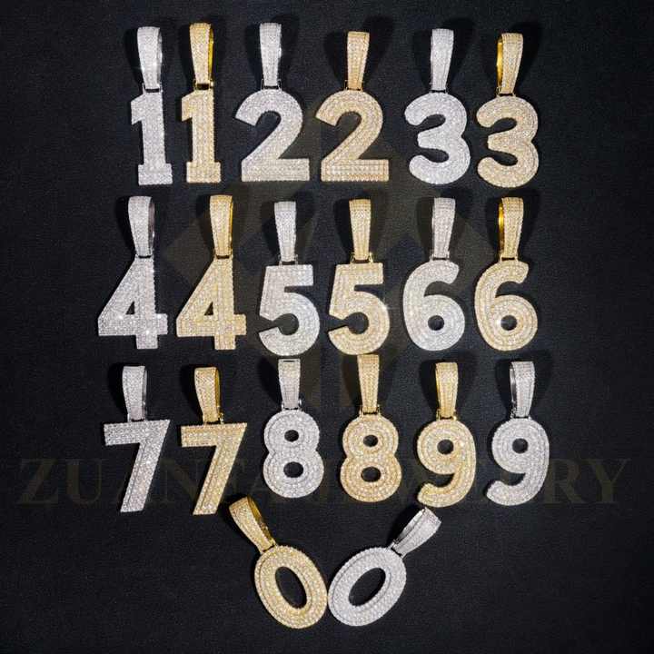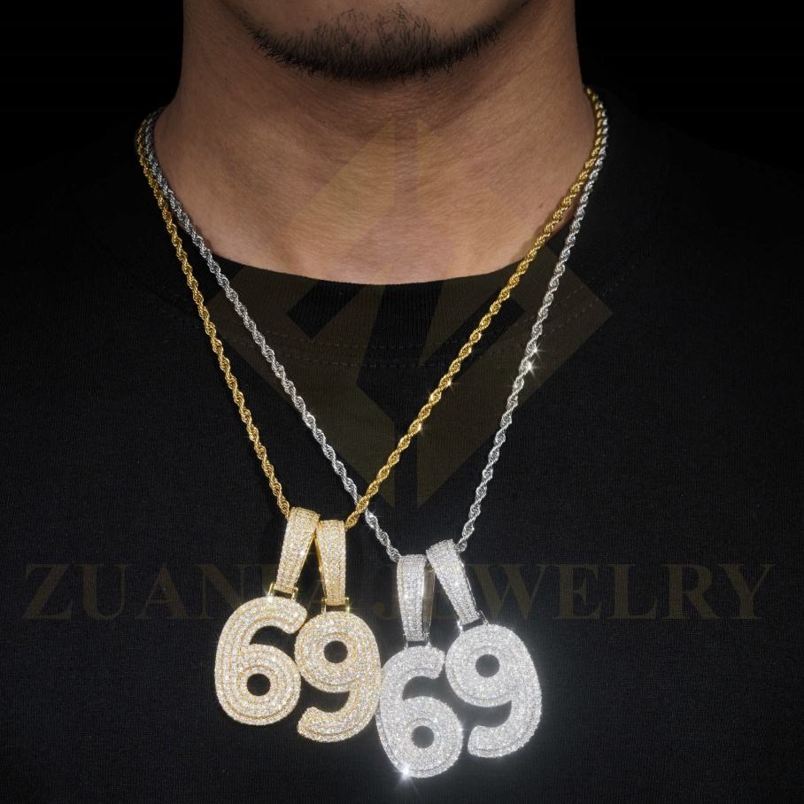 Fast Shipping Ready to Ship Lucky Numbber Pendant Vvs Moissanite Silver Gold Plated Iced Out PendantLuxury Moissanite Jewelry