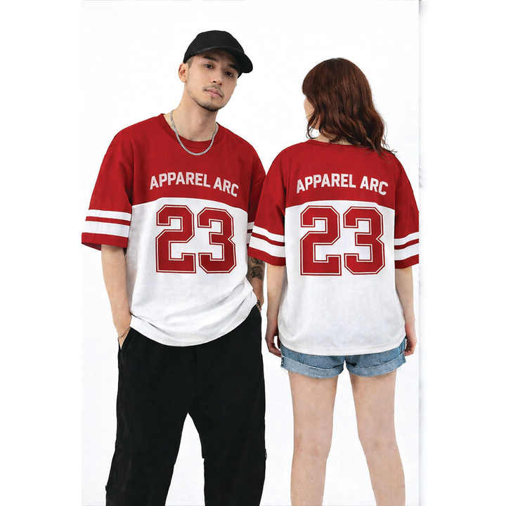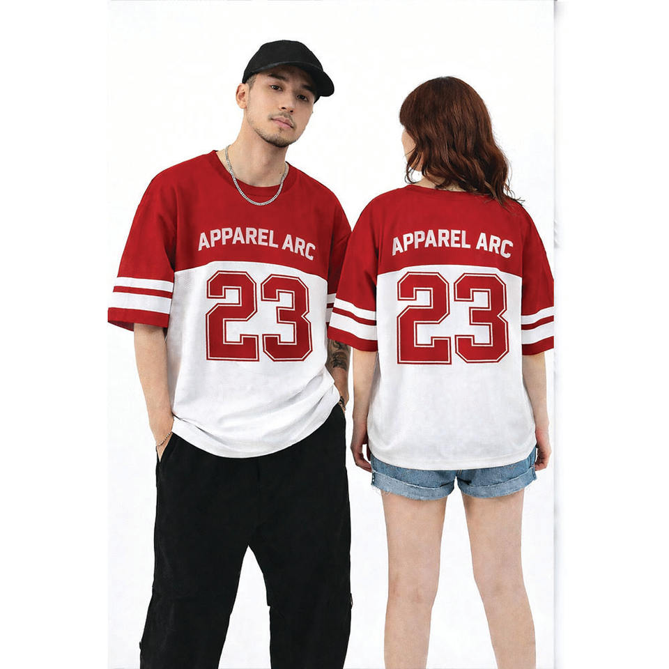 เสื้อยืดโอเวอร์ไซส์ตาข่ายสีแดงขาวแบบยูนิเซ็กซ์ สปอร์ต สตรีทแวร์ พร้อมส่งเร็ว รับสกรีนหมายเลขตามสั่ง จากผู้ผลิต