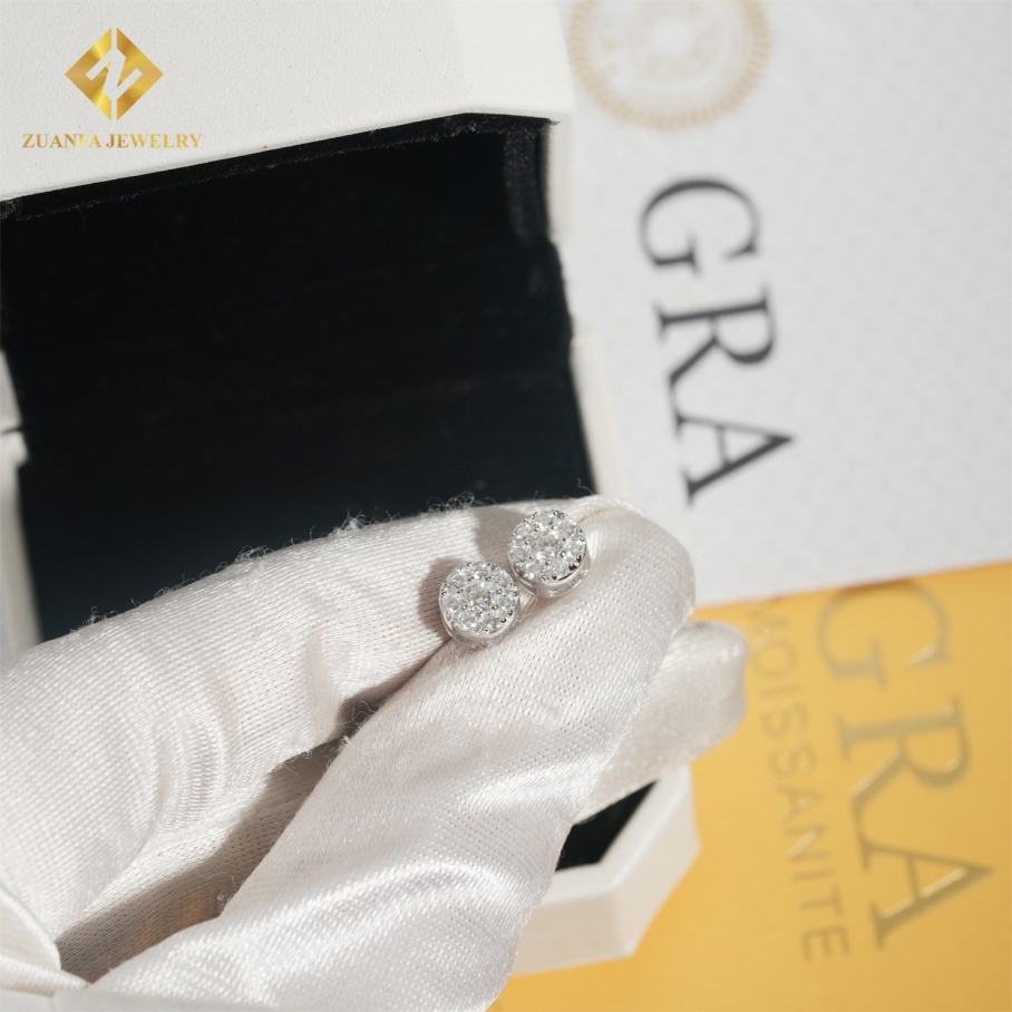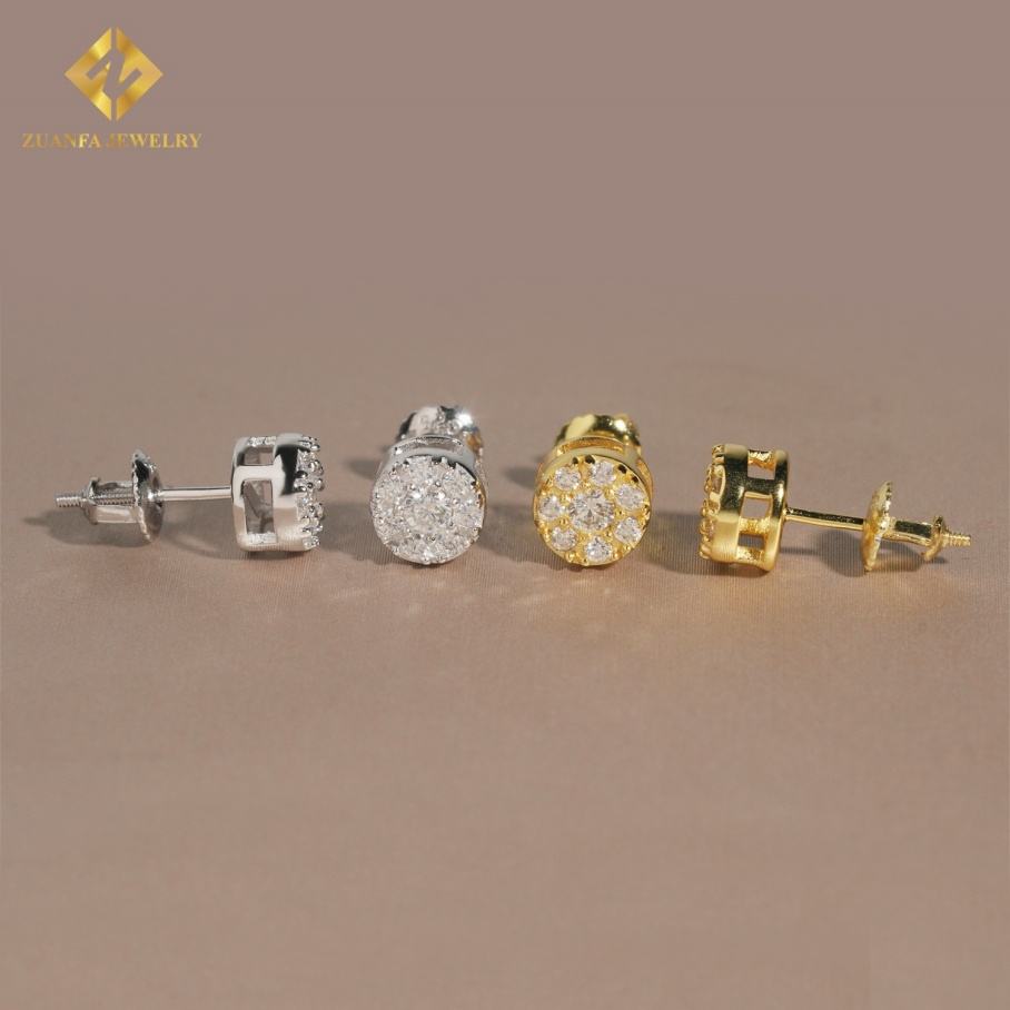 จัดส่งเร็วกลมต่างหูคลัสเตอร์แฟชั่นต่างหู925แข็งเงิน VVS moissanite ต่างหูฮิปฮอปปูเต็มรูปแบบ
