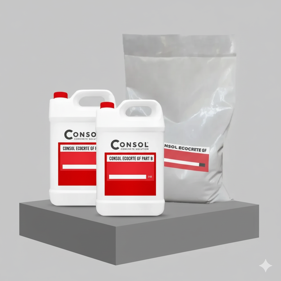 สารเคลือบพื้นโพลียูรีเทนแบบแห้งเร็ว Consol Ecocrete GF สามองค์ประกอบ ป้องกันแบคทีเรีย ผิวเรียบไร้รอยต่อ แบบน้ำ ทาด้วยแปรง