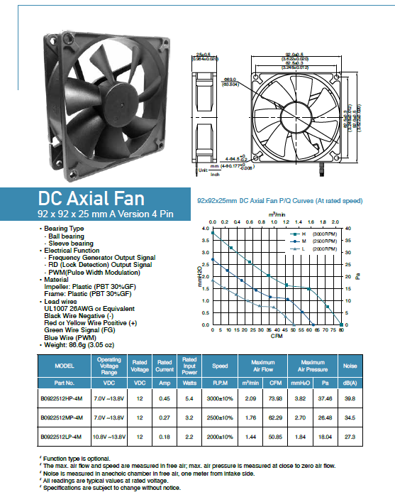 พัดลมระบายความร้อนแบบไร้แปรงถ่าน ความเร็วสูง ขนาด 92x92x25 มม. 12V ใบพัดพลาสติก 2000-3000 รอบต่อนาที เสียงเบา 27.3-39.8 เดซิเบล 2.2-5.4 วัตต์ OEM