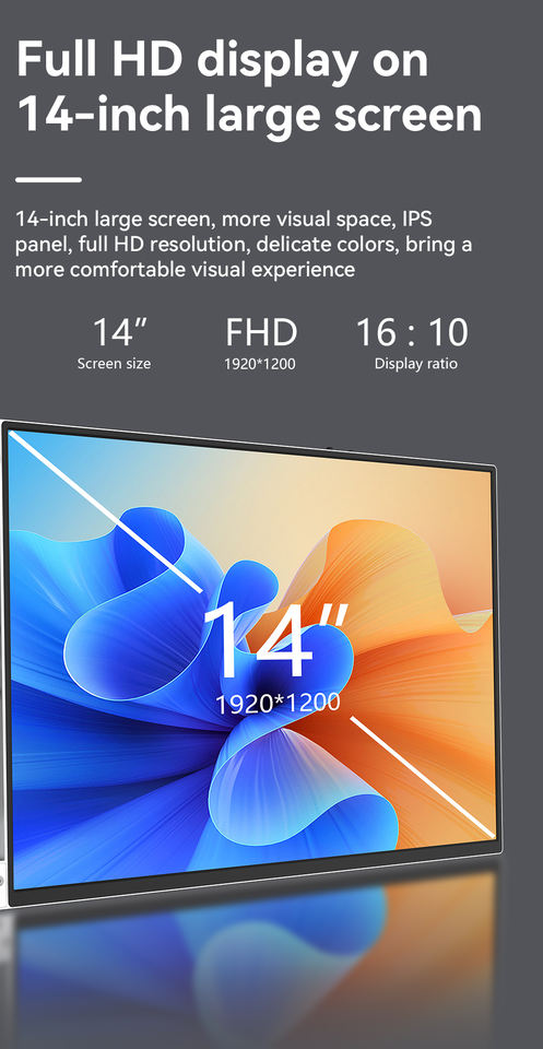 จัดส่งเร็ว14/15แผง IPS ขนาด6/16นิ้ว1920x1080, หน้าจอคู่แบบพกพาประเภท C เซ็นเซอร์แรงโน้มถ่วงแบบ capacitive 10จุด