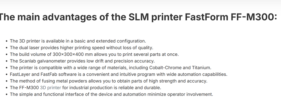เครื่องพิมพ์โลหะ 3 มิติ FastForm แบบ SLM สำหรับแม่พิมพ์อุตสาหกรรมและงานฝีมือขนาดใหญ่