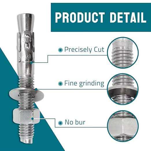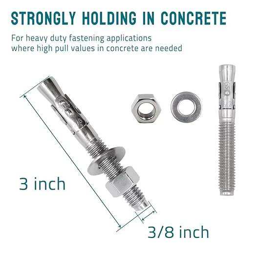 สลักยึดคอนกรีตสแตนเลสขนาด 3/8\" x 5 นิ้ว ทนการกัดกร่อน สำหรับยึดฐานผนังปูนซีเมนต์