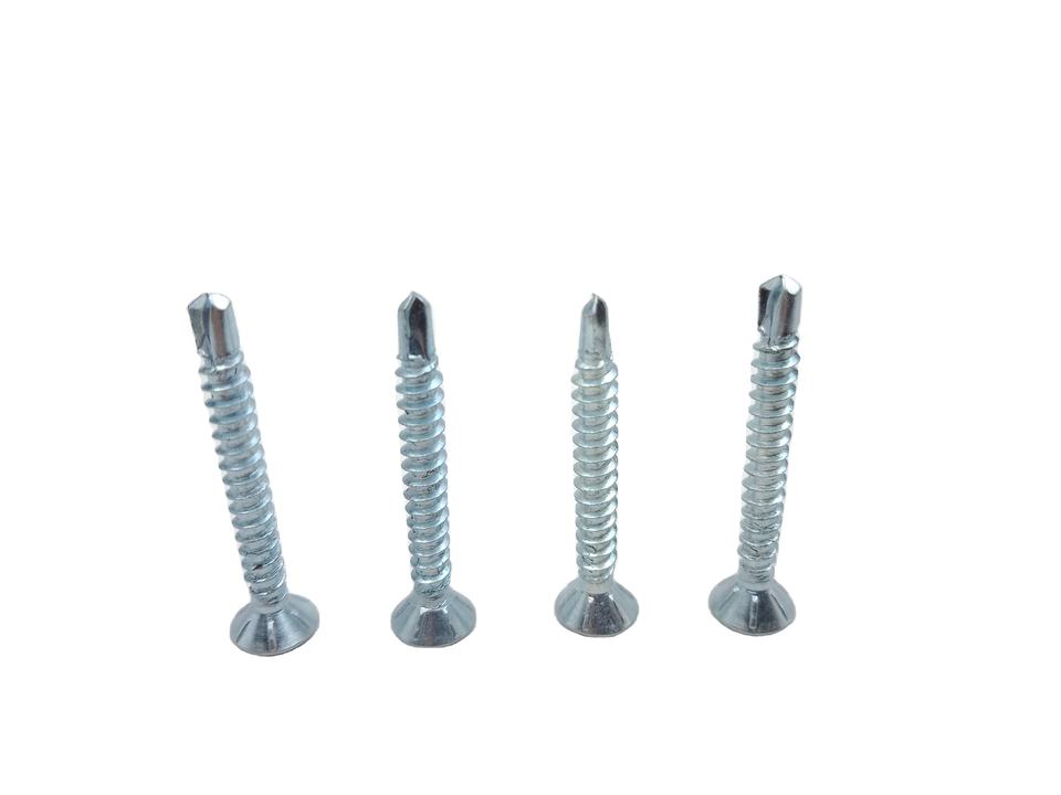 FASTO สกรูหัวเจาะเหล็กคาร์บอนแบบแบนสกรูเจาะด้วยตนเองชุบสังกะสี