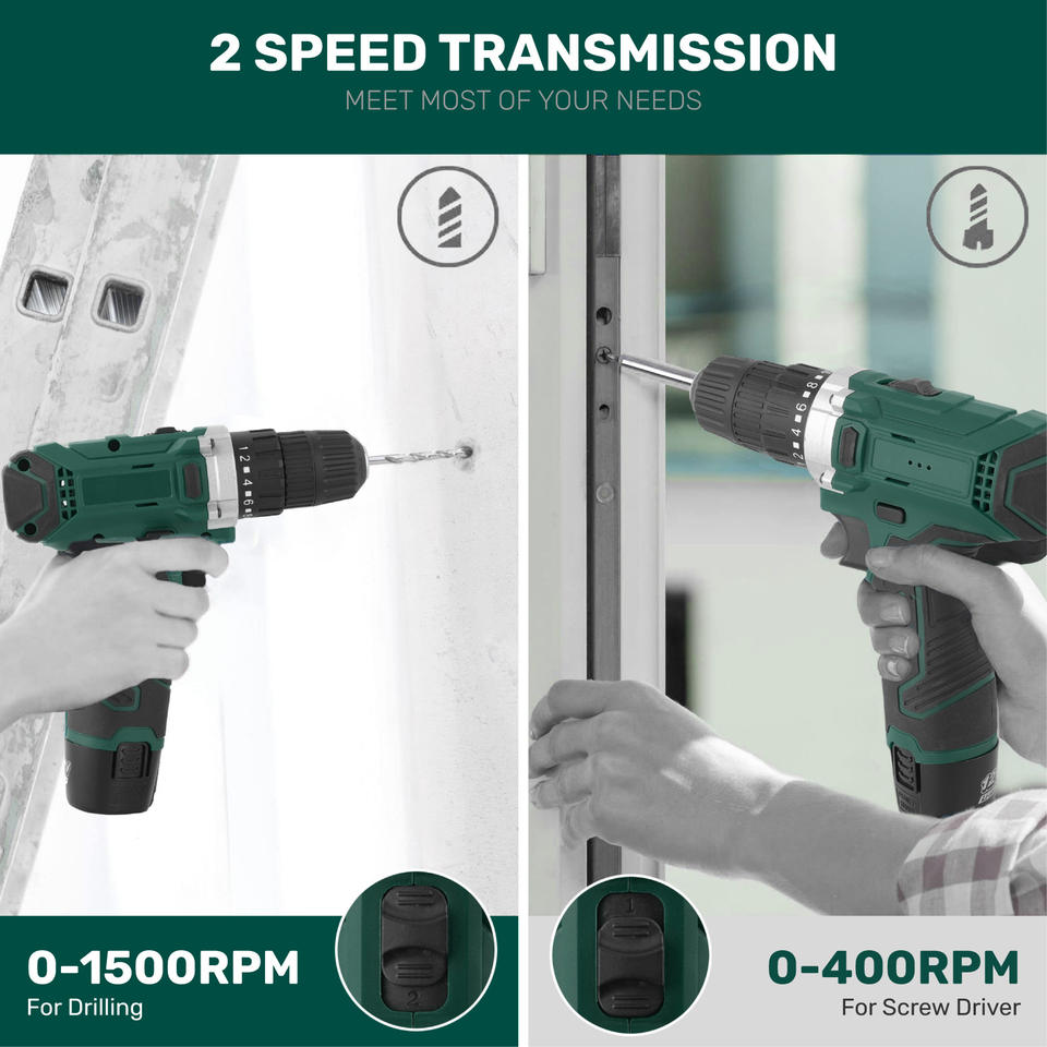 ชุดสว่านไฟฟ้า Fastpro 175 ชิ้น 12V สว่านกระแทกสองระดับความเร็ว พร้อมแบตเตอรี่ลิเธียมแบบชาร์จได้ สำหรับงาน DIY