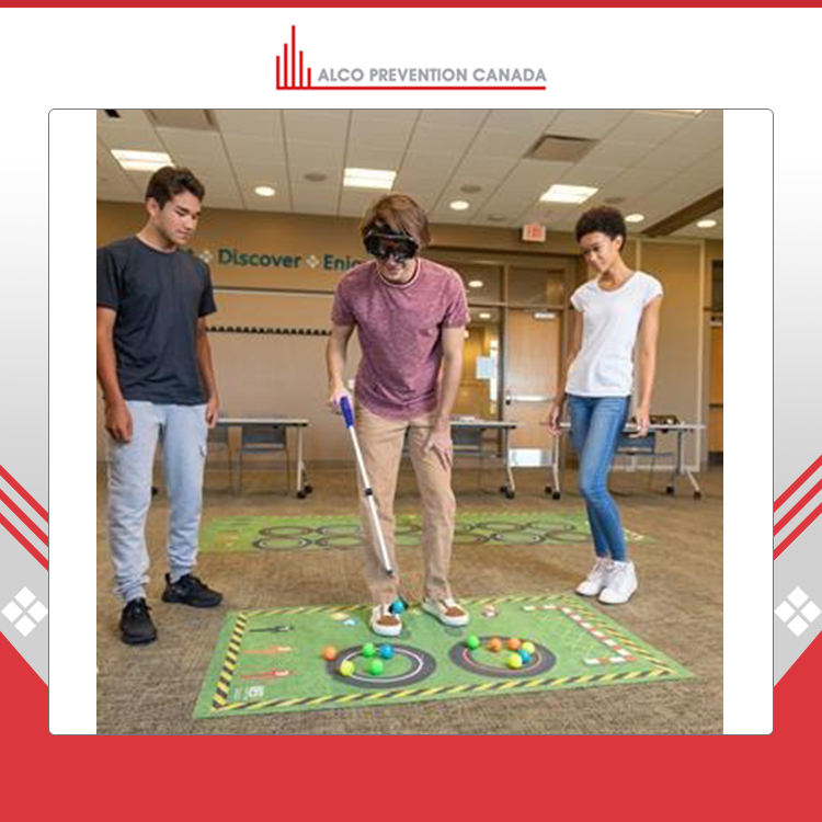 แว่นตาโพลีคาร์บอเนตจำลองการกระทบกระแทกที่รุนแรงแว่นตาสำหรับคนเมาจำลองการมองเห็นร้ายแรงจากแคนาดา