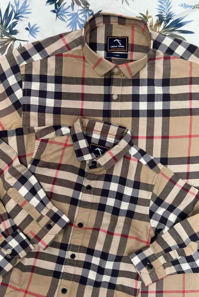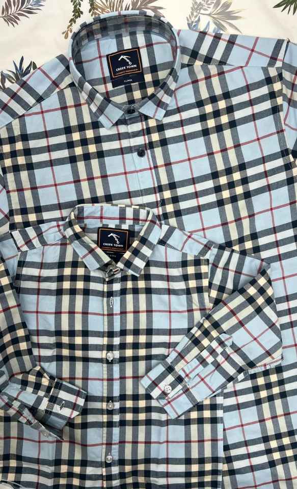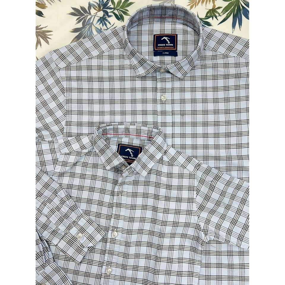 เสื้อเชิ้ตลายตารางหมากรุกคอตตอนเข้าคู่กับคุณพ่อลูกชายปรับเข้าคู่กับครอบครัวได้ตามต้องการ