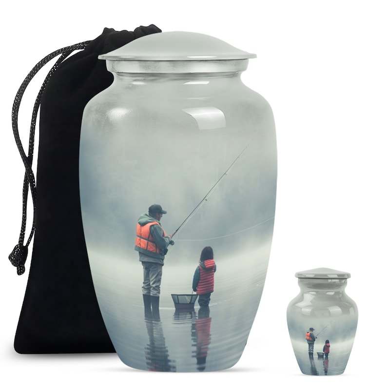 โกศที่ระลึกถึงการตกปลาสำหรับขี้เถ้าตกแต่งฉากตกปลาสำหรับผู้ใหญ่