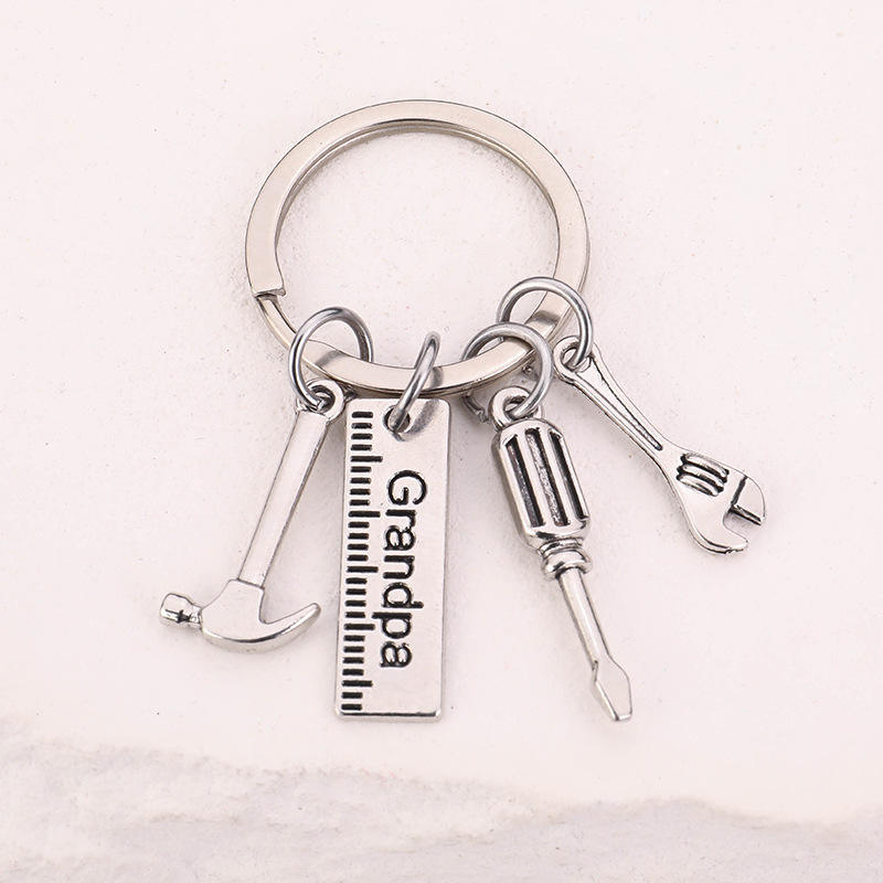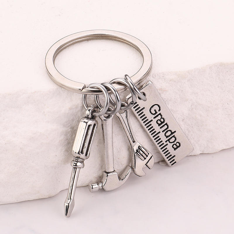 วันพ่อ DIY เปล่าพิมพ์ลายพ่อ/พ่อ/ปู่/ลุงค้อนไขควงประแจเครื่องมือพวงกุญแจโลหะ