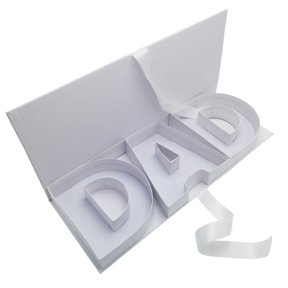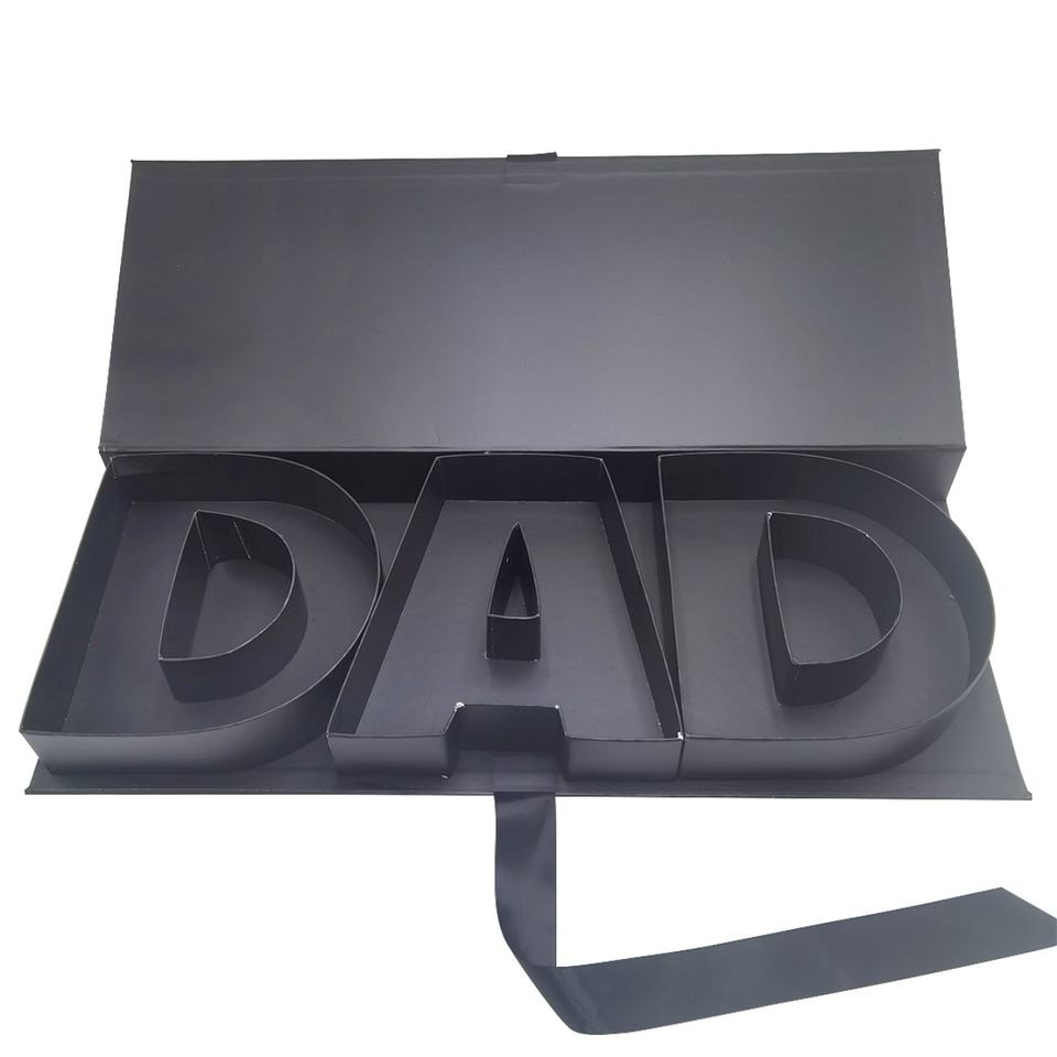 กล่องของขวัญรูปตัวอักษร DAD ทำจากกระดาษแข็ง บรรจุช็อกโกแลต พร้อมชุดของขวัญวันพ่อ ประกอบด้วยดอกไม้แสนสวยและชาร์กูเตอรี