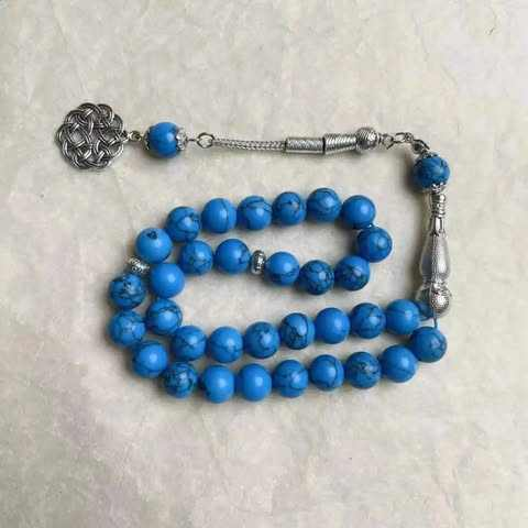 ลูกประคำฟาตูรัน ทำจากเรซิ่น 100% เป็นมิตรกับสิ่งแวดล้อม วัสดุคุณภาพสูง ทำด้วยมือ 45 เม็ด สีเทอร์ควอยซ์ สไตล์รักษาความรัก