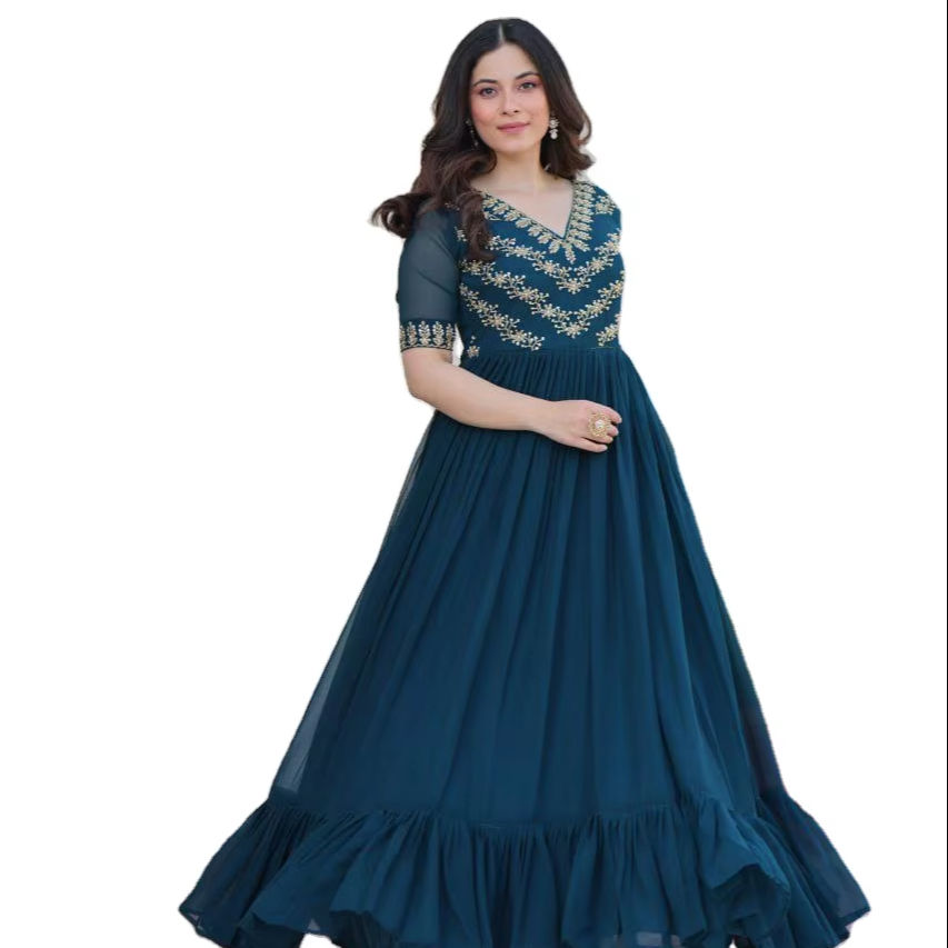 Fabric:GEORGET WITH HEAVY EMBROIDERY