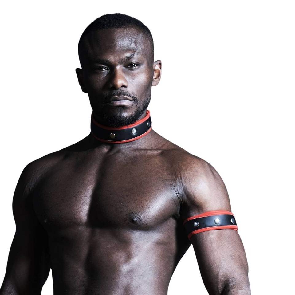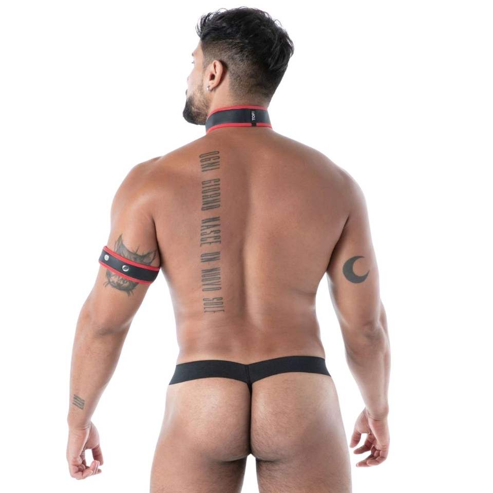 ปลอกคอแฟชั่นขนสัตว์เทียมสำหรับผู้ชาย สีดำ/แดง ปรับได้ ระบายอากาศได้ดี เป็นมิตรกับสิ่งแวดล้อม พร้อมเชือกผูก ไซส์ใหญ่