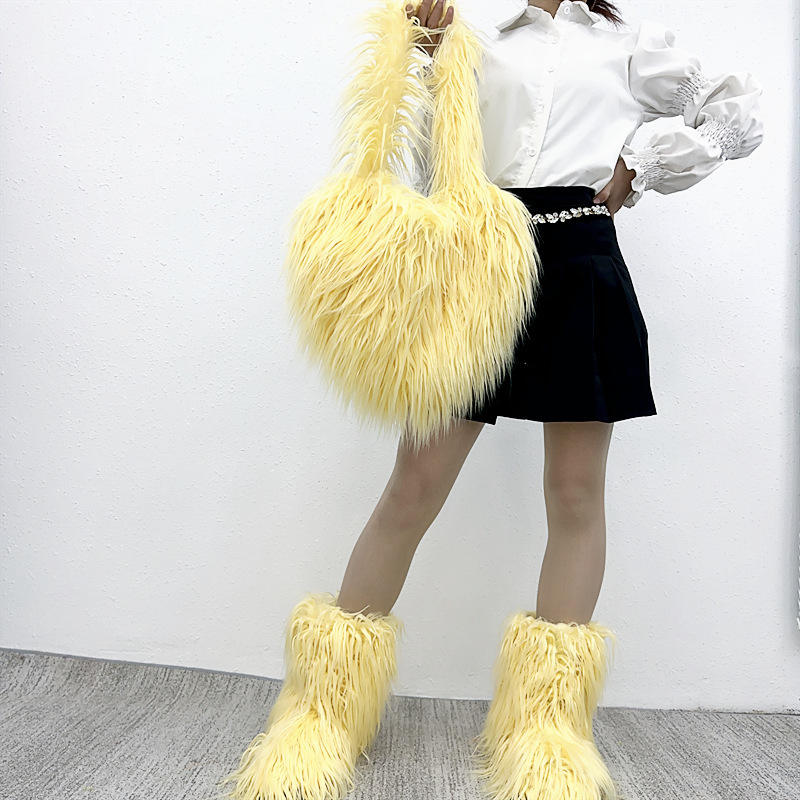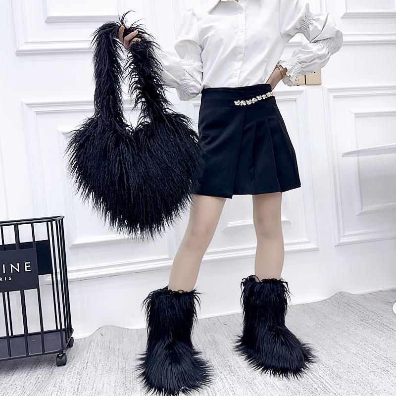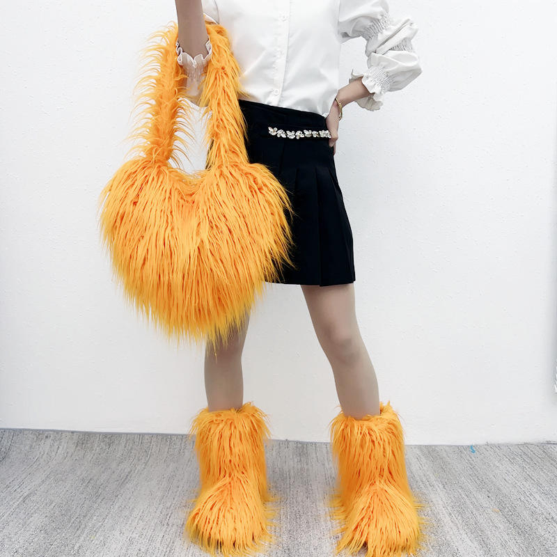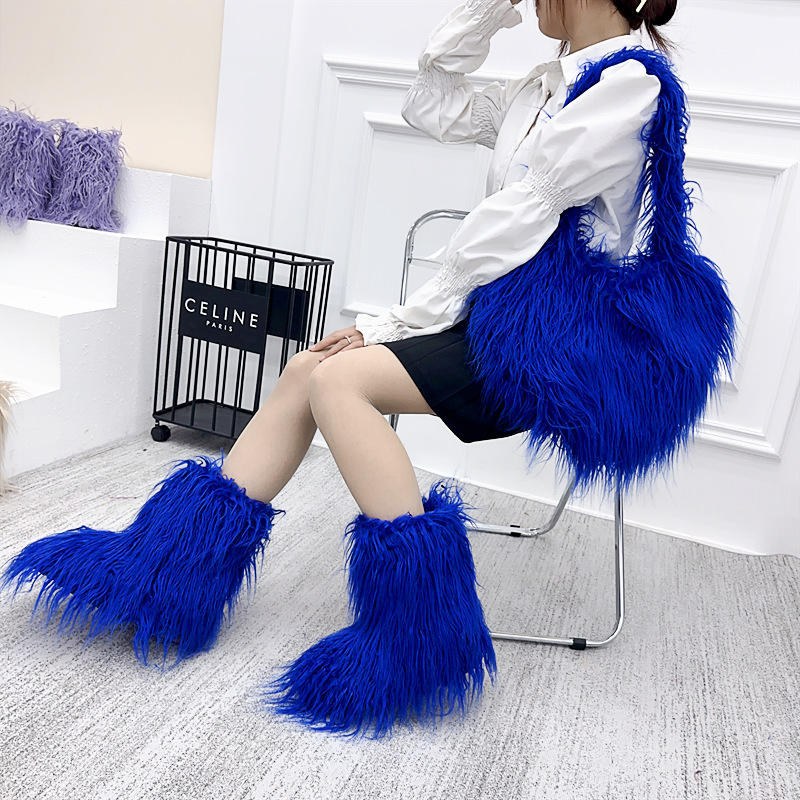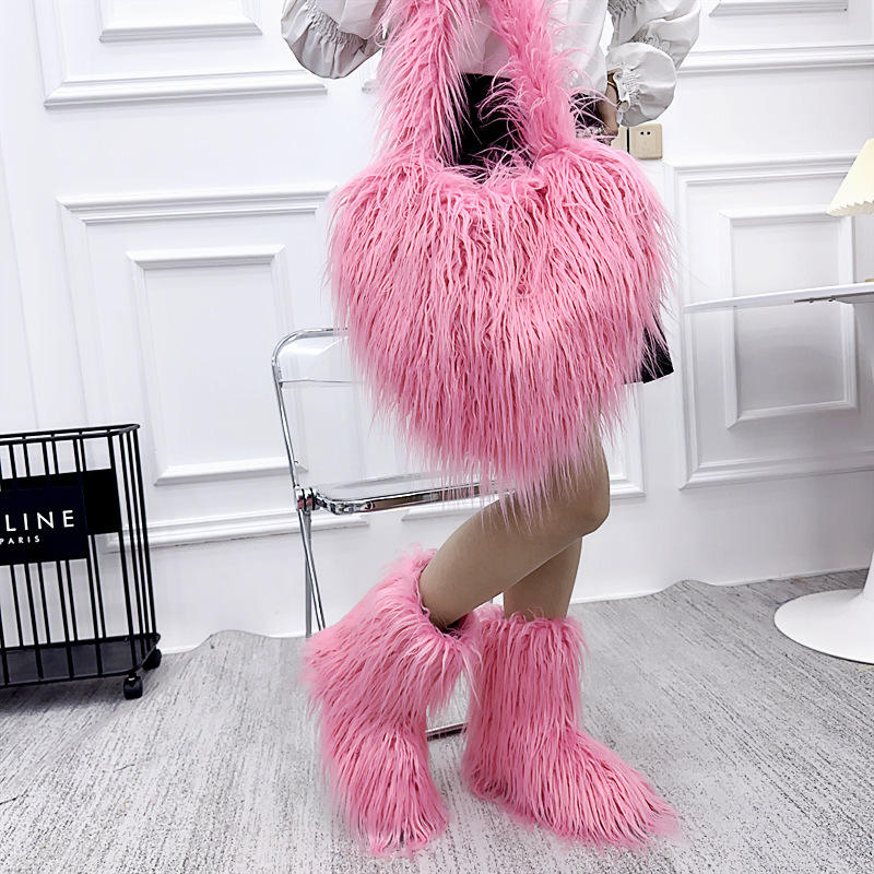 Model Number:faux fur boots and bag set