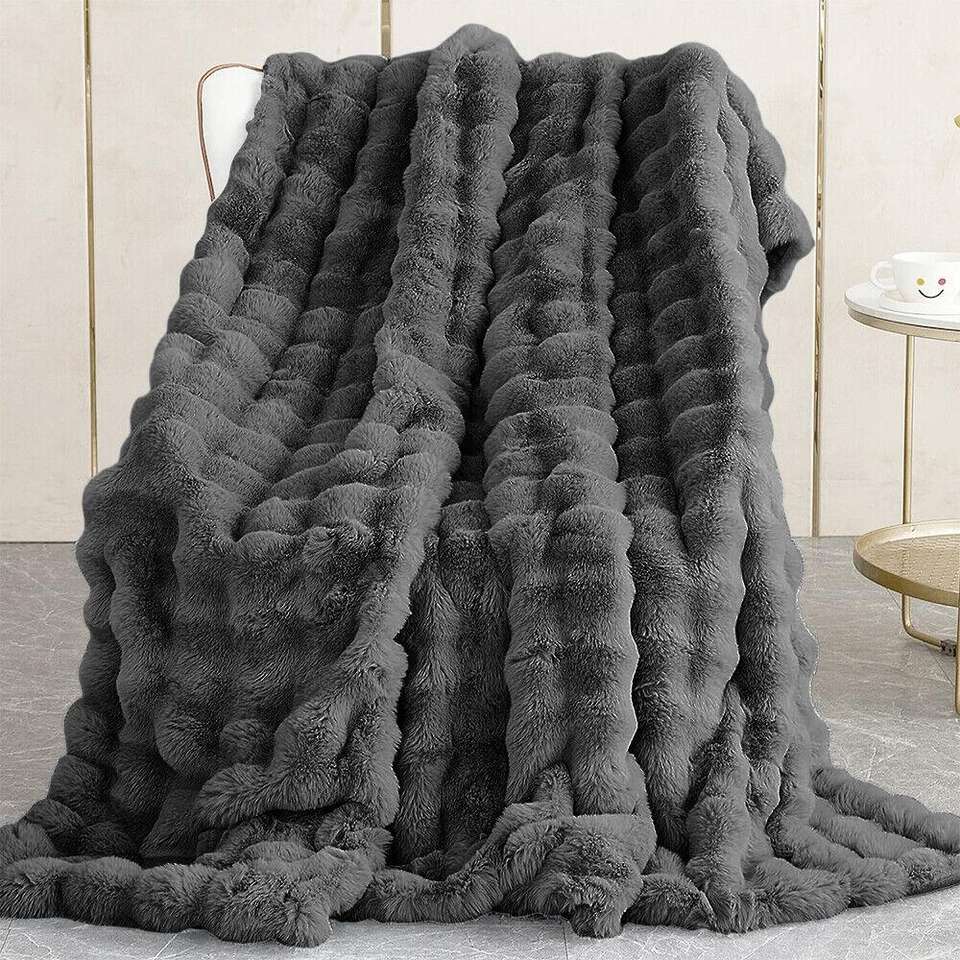 ผ้าห่มขนเฟอร์เทียมหรูหราผ้าห่มนุ่มพิเศษตกแต่งบ้านเลือน