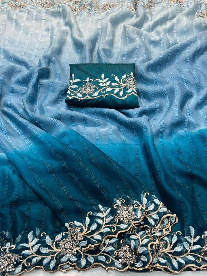 ผ้าจอร์เจียเทียมพิมพ์ลายสวยตัดขอบแนวแฟนซี5.5ใส่ทำงาน MTR ยาวสำหรับปาร์ตี้ส่าหรีแฟชั่นพิเศษ
