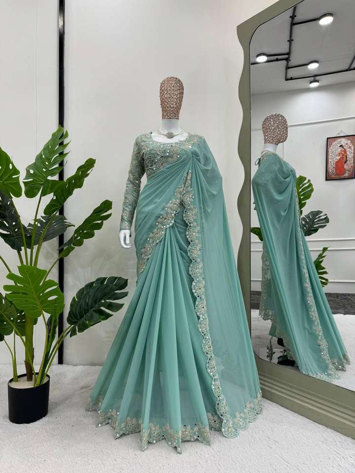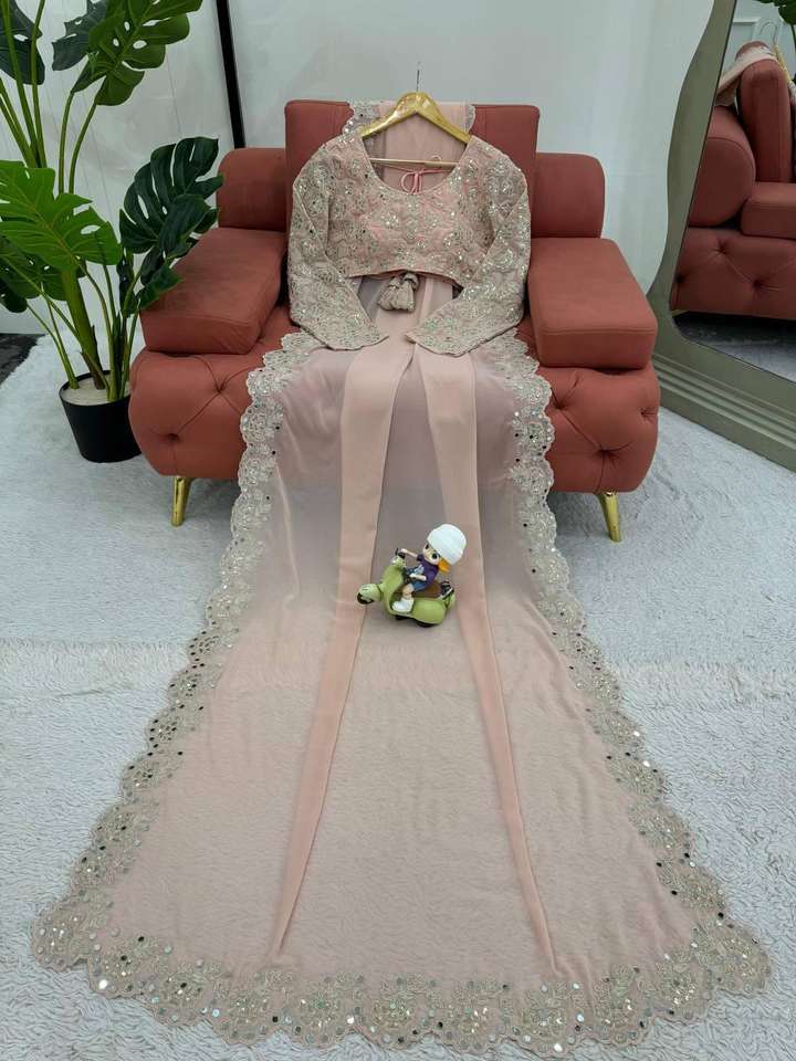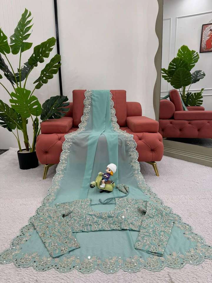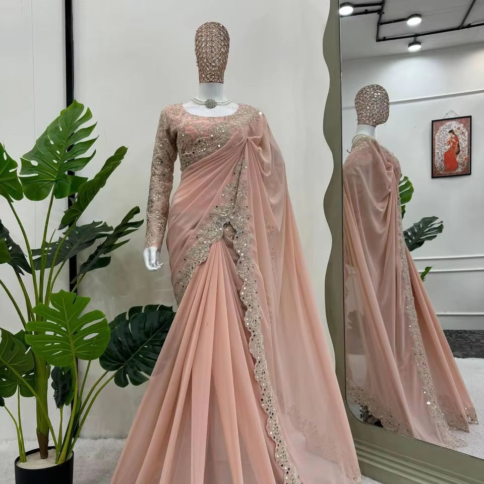 ผ้าจอร์เจียเทียมตกแต่งและเรียงตามลำดับพร้อมกระจกจริงสำหรับส่าหรีและเสื้อเบลาส์เย็บติดกันแบบแฟนซีและงานตามลำดับ
