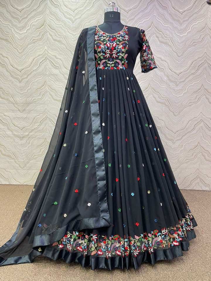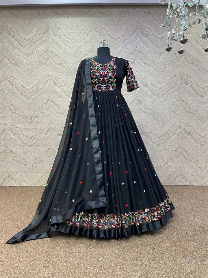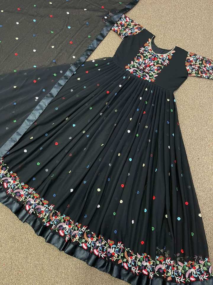 ชุดเดรสผ้าจอร์เจตต์ปักลายพร้อมผ้าคลุมไหล่ ชุดเดรสดีไซน์เนอร์อินเดียใหม่สำหรับผู้หญิงและเด็กผู้หญิง ชุดสำหรับงานเทศกาล งานปาร์ตี้ ตัดเย็บสำเร็จ