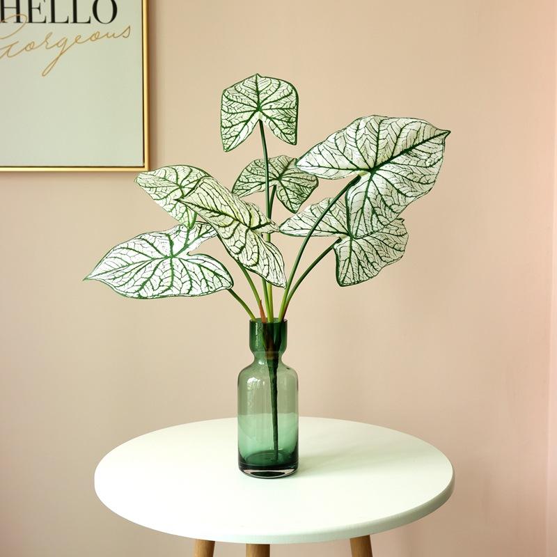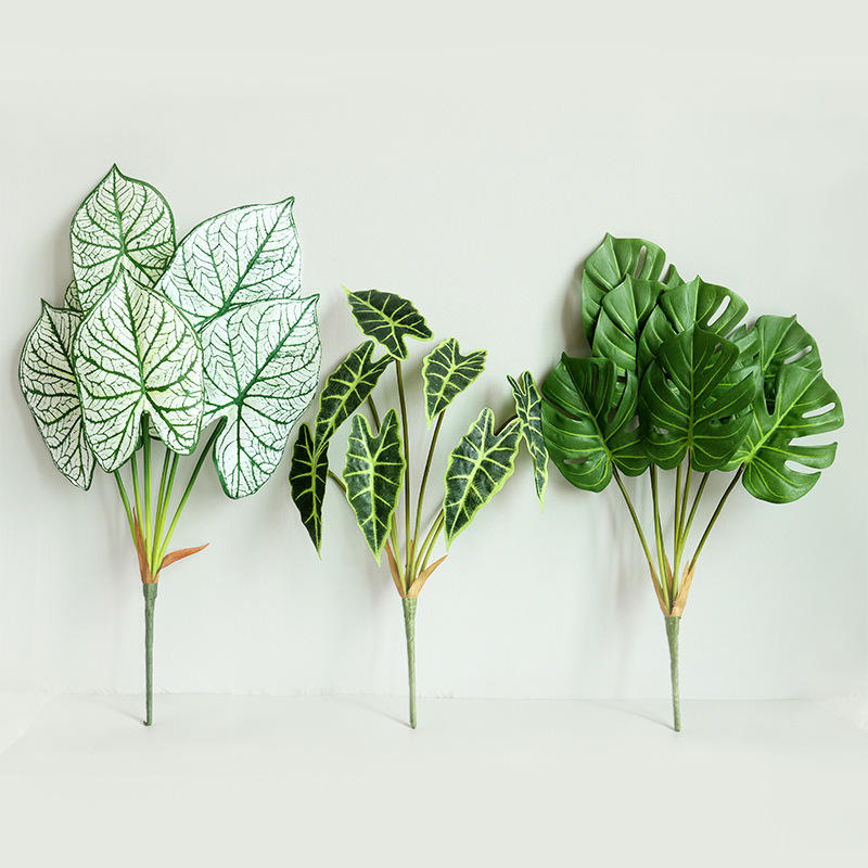 ใบไม้ปลอมสีเขียวพืช PVC caladium Bicolor Monstera ใบไม้ช่อต้นปาล์มประดิษฐ์สำหรับตกแต่งบ้านในงานแต่งงานที่สำเร็จการศึกษา