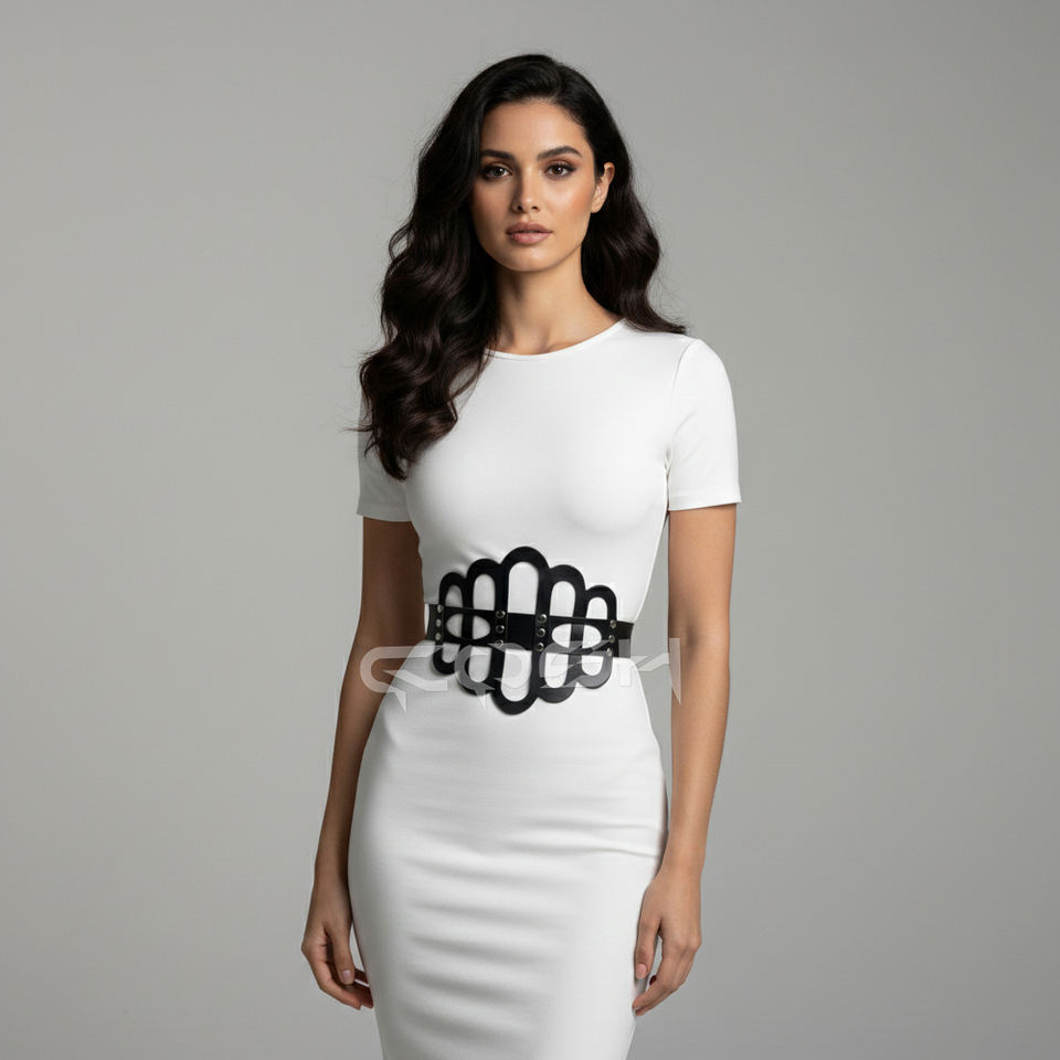 ชุดสายรัดตัวแบบมีรูเจาะทำจากหนังเทียม