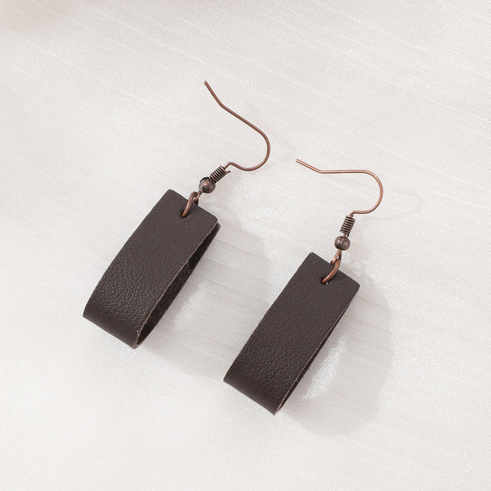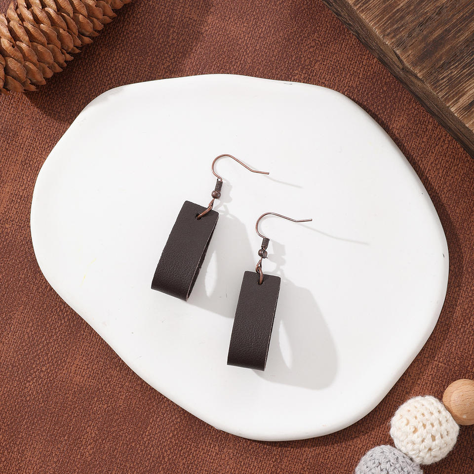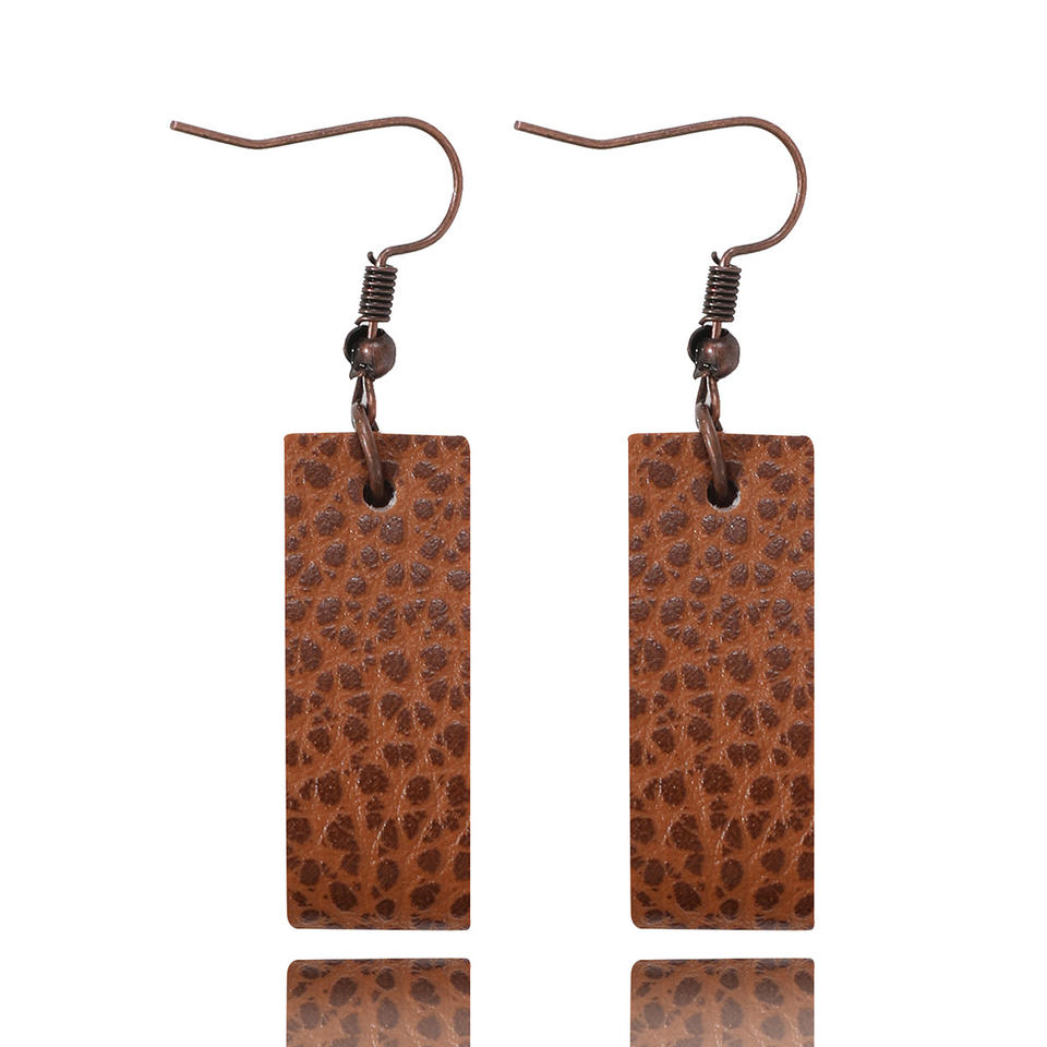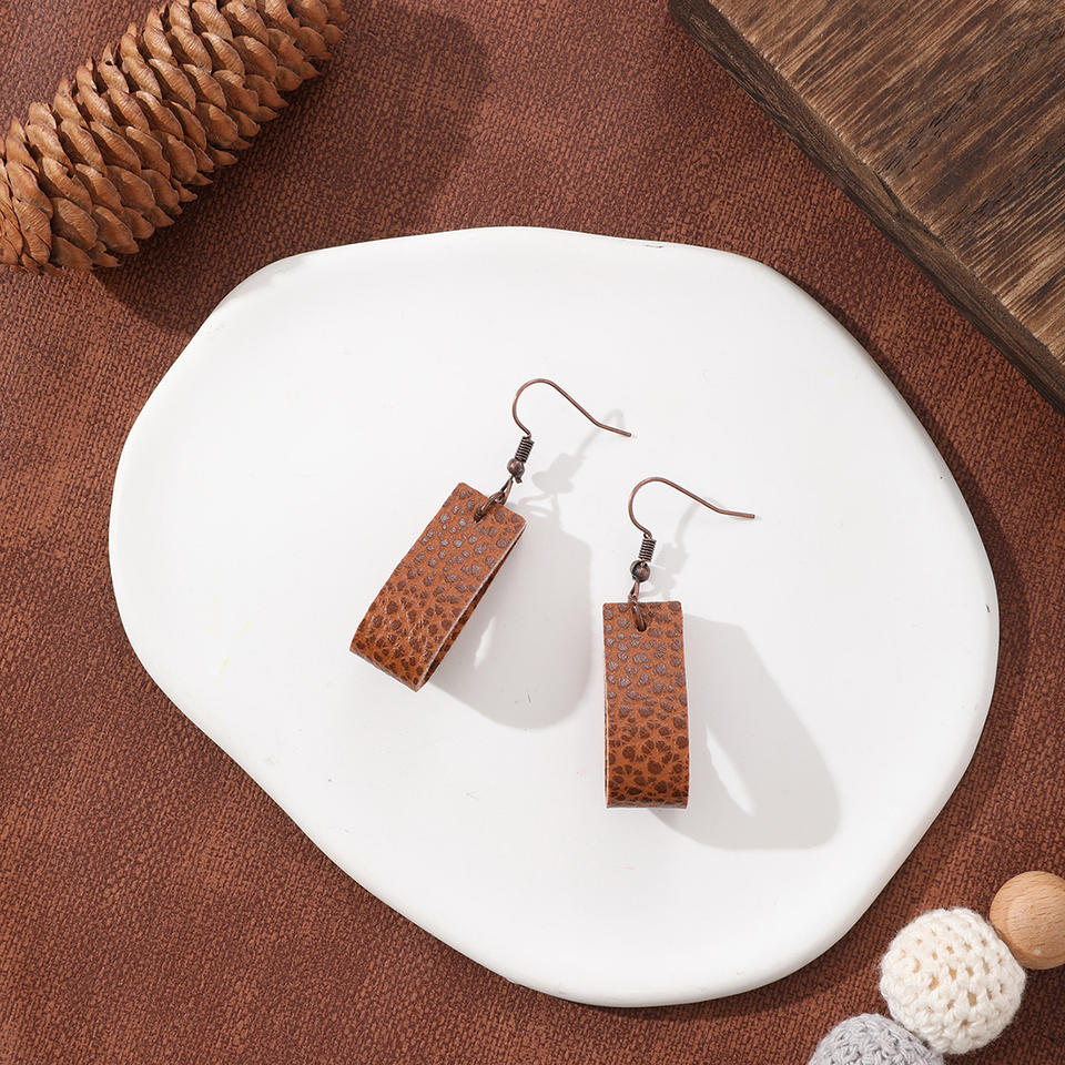 ต่างหูหนังเทียมสำหรับผู้หญิงต่างหูจี้หนังลายจุดทรงเรขาคณิตสไตล์908