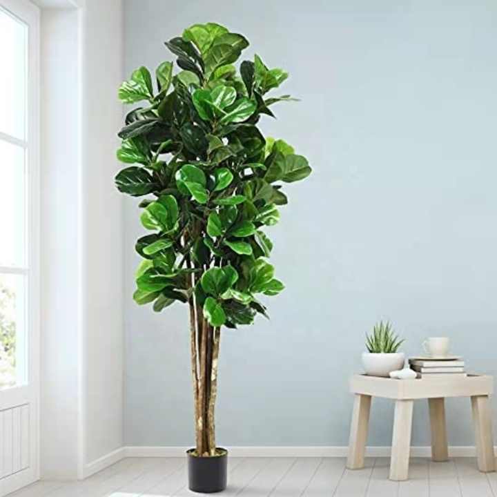 FaXu ของตกแต่งบ้านต้นมะเดื่อประดิษฐ์ต้นมะเดื่อต้นมะเดื่อพร้อมลำต้นไม้พลาสติก Ficus lyrata pandurata กล่องกระดาษ