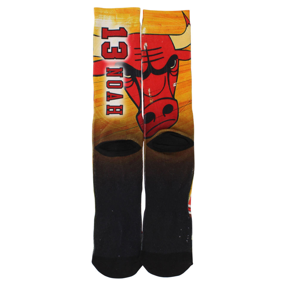 ถุงเท้าสำหรับผู้ชายตรงกลางตรงกลางเมืองชิคาโก BULLS joakim noah สีเหลือง L, สี: เหลือง/แดง/ดำ100% ของแท้