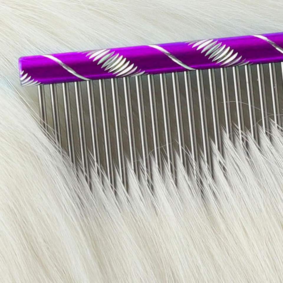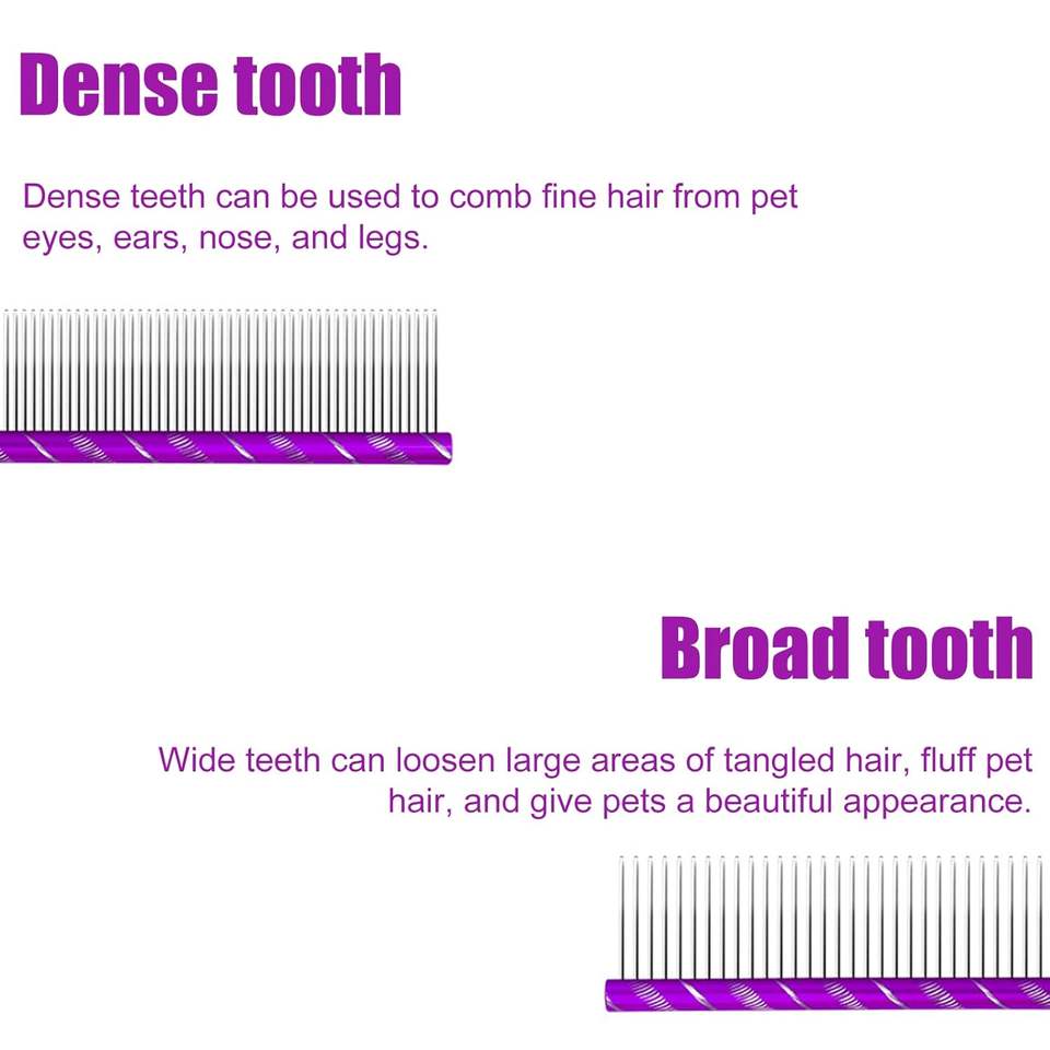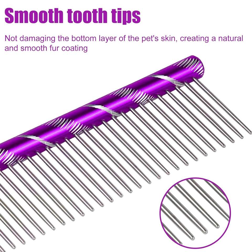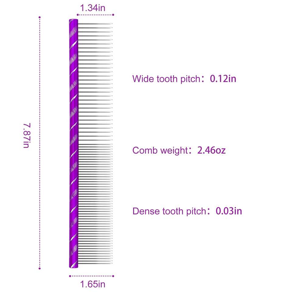 หวีโลหะสำหรับสัตว์เลี้ยง ขนาด 8 นิ้ว ยี่ห้อ Fearless ผลิตจากวัสดุ ABS ดีไซน์เรียบง่าย มีสีม่วง น้ำเงิน แดง และทอง สำหรับการดูแลขนแมวและสุนัข