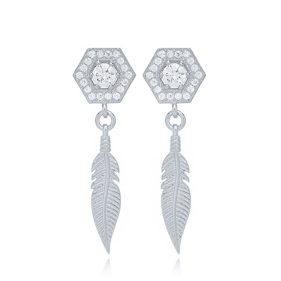 ต่างหูสตั๊ดหิน CZ เสน่ห์ขนนกเครื่องประดับเงินสเตอร์ลิงแบบตุรกีขายส่ง925