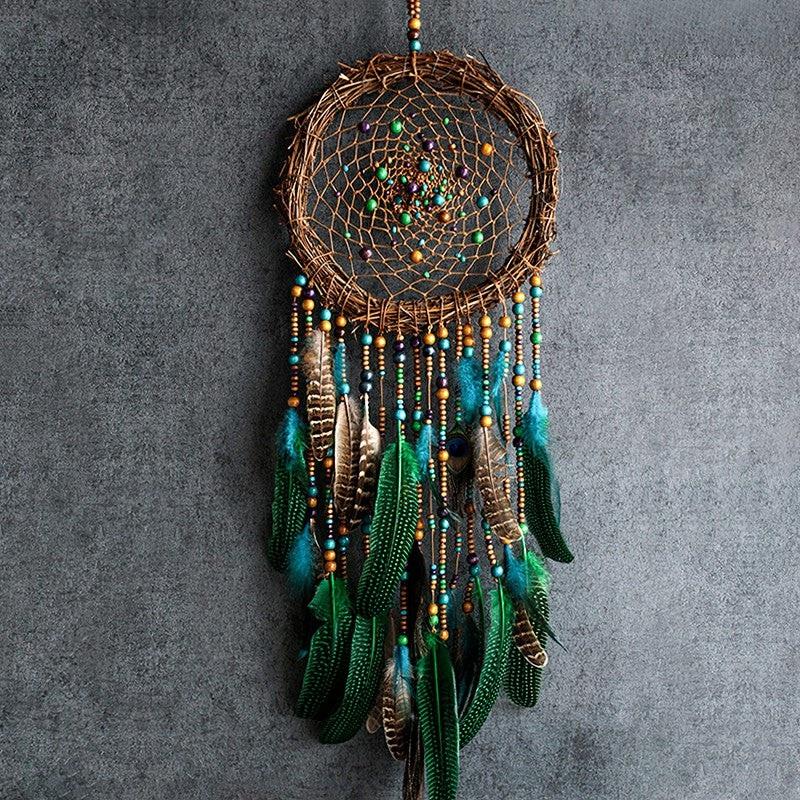 เครื่องดักฝันขนนกการออกแบบสไตล์แฟนซีตกแต่งผนังสำหรับบ้านรูปดาวตกแต่งผนังสไตล์ Boho แบบแบน