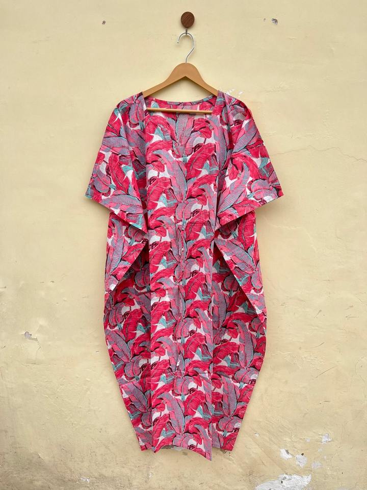 ชุดคาฟทันผ้าฝ้ายพิมพ์ลายขนนกแบบอินเดียสำหรับผู้หญิง ชุดเพื่อนเจ้าสาว ความยาวระดับเข่า มีเชือกผูก น้ำหนักเบา เหมาะสำหรับฤดูหนาว