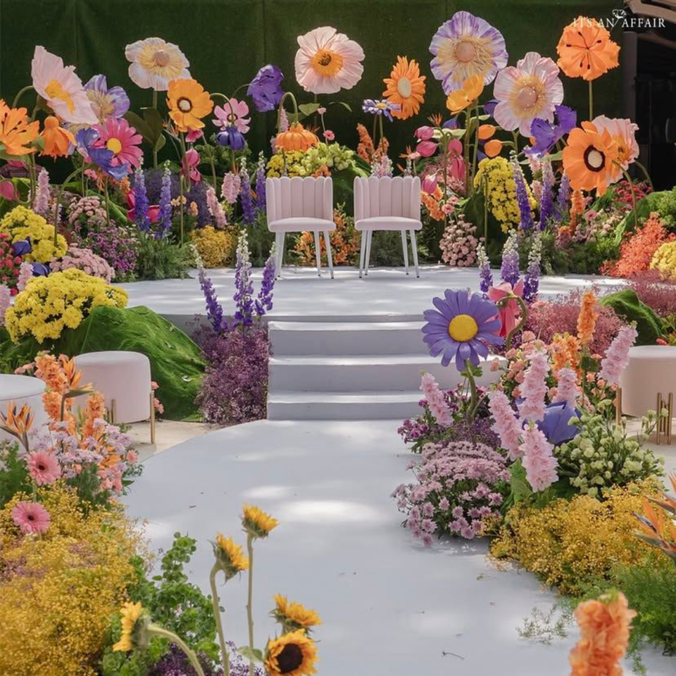 ประดับด้วยดอกไม้ประดิษฐ์ขนาดใหญ่จากผ้าออร์แกนซ่าและกระดาษ