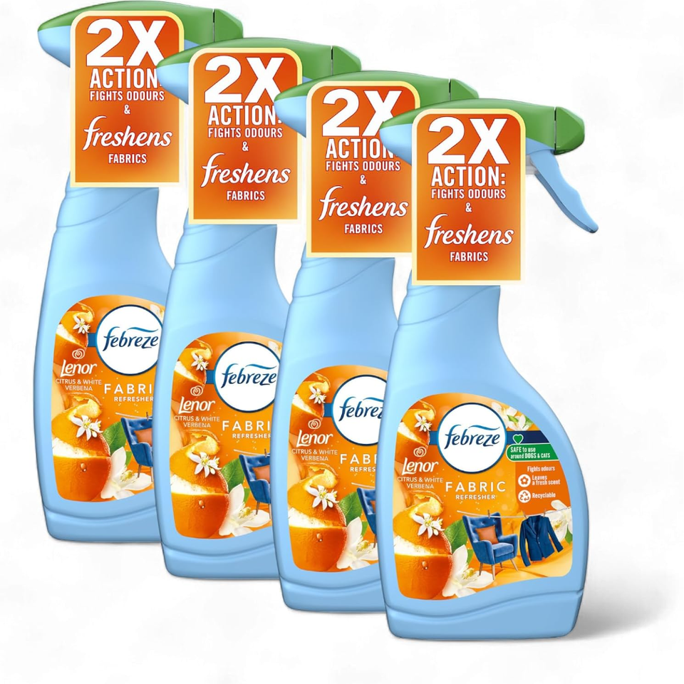 ชุดผ้า Febreze ทำให้สดชื่น, สเปรย์ผ้าสูตรน้ำ, น้ำยาซักผ้ากลิ่นบูสเตอร์-4xfebreze Citrus และ White Verbena 500มล.