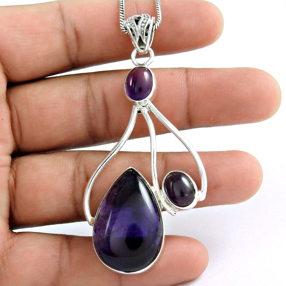 เครื่องประดับพลอยอเมทิสต์สีม่วงธรรมชาติเครื่องประดับพลอย925เงินสเตอร์ลิงเครื่องประดับดีไซน์ไม่เหมือนใคร