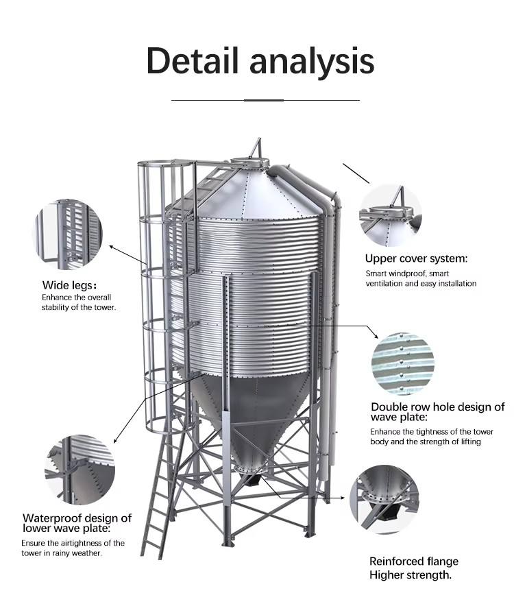 ไซโลเก็บอาหารสัตว์สำหรับเครื่องให้อาหารไก่เนื้ออัตโนมัติเต็มรูปแบบ อุปกรณ์ฟาร์มสัตว์ปีกสำหรับระบบเพาะพันธุ์และให้อาหารไก่