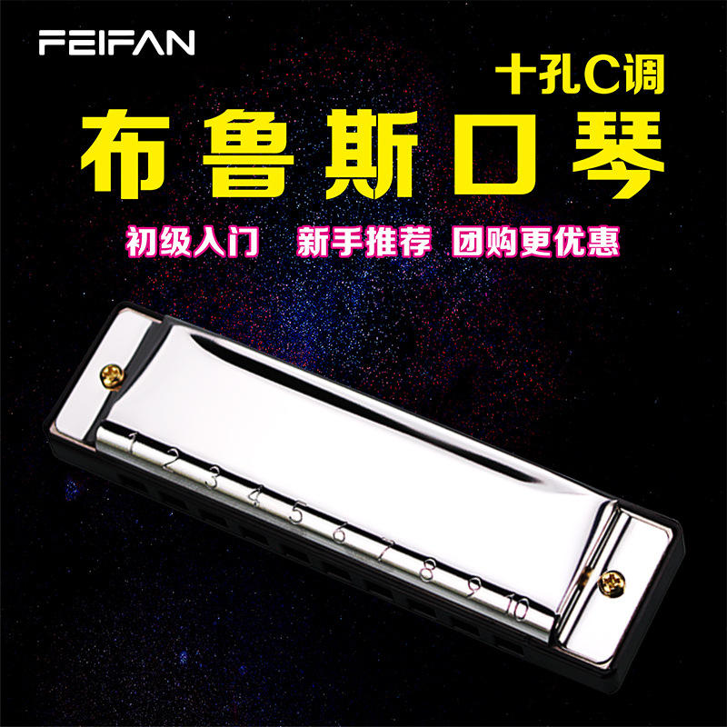 เฟยฟาน ฮาร์โมนิก้า 10 รู บลูส์ ฮาร์โมนิก้า คีย์ C เมเจอร์ สีเงิน สำหรับเด็ก นักเรียน ผู้เริ่มต้น เครื่องดนตรี