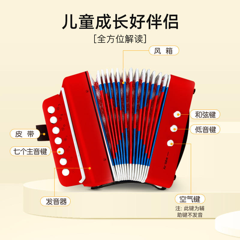 เฟยฟาน 7-คีย์แอคคอร์เดียนสำหรับเด็กของเล่นเพื่อการศึกษาเครื่องดนตรีแบบพกพาพร้อมวาล์วลมสีแดง