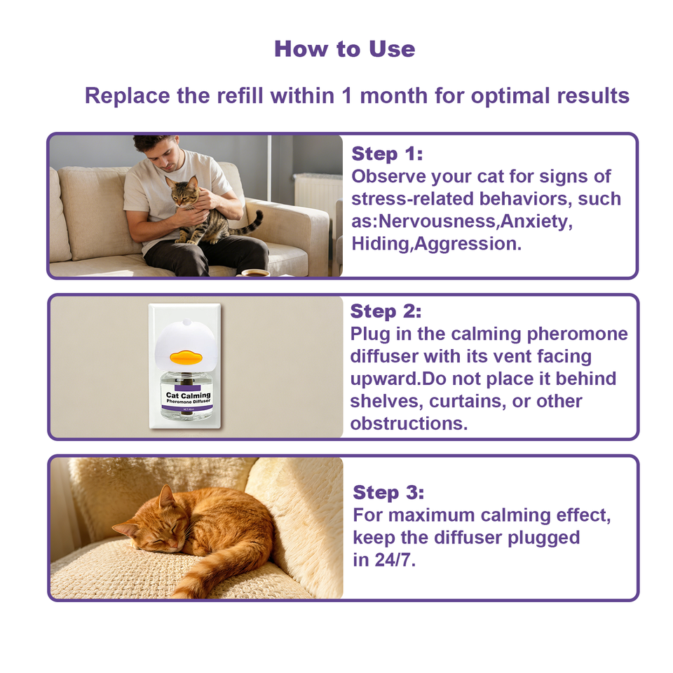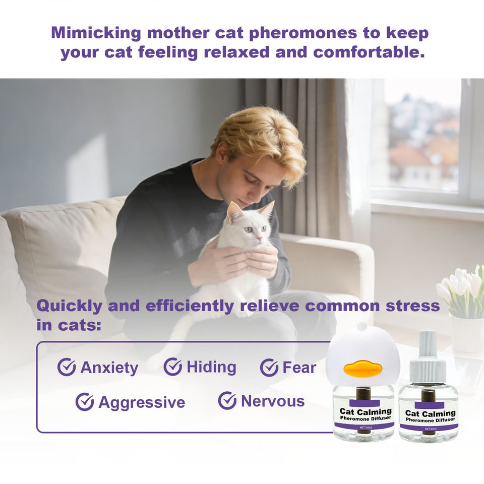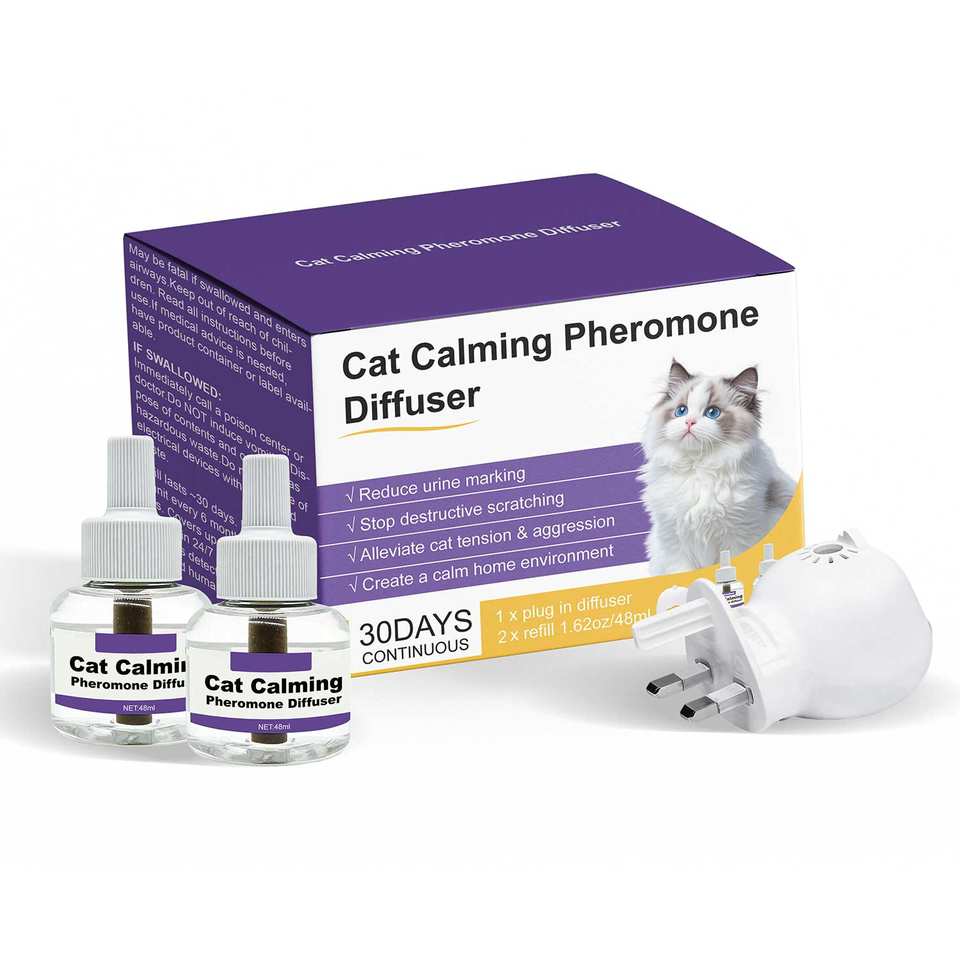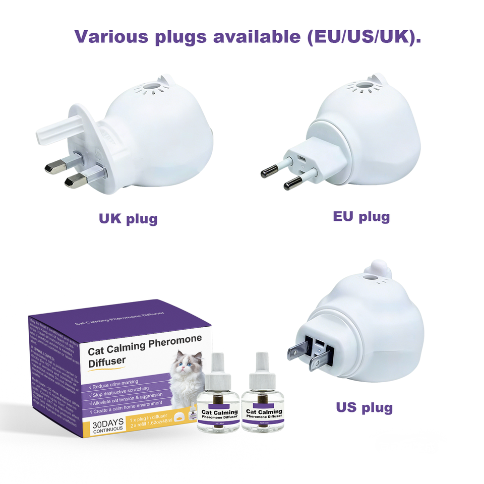 ชุดเครื่องกระจายกลิ่นฟีโรโมนสำหรับแมว (พร้อมรีฟิล 2 ชิ้น) | ครอบคลุม 70 รายการ ㎡ | วิธีบรรเทาความเครียดสำหรับแมวโดยไม่ใช้ยา | ปลั๊กไฟแบบอังกฤษ