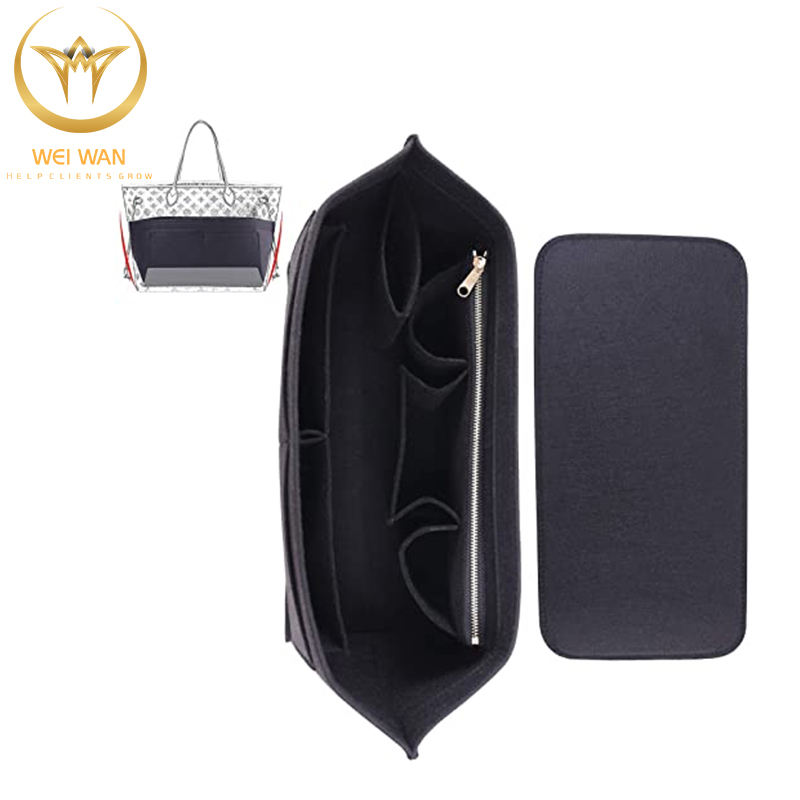 Felt Organizer Insert Handbag Tote Purse Organizer Insert Large with Zipper Bag Fits for Speedy and Neverfull MM
