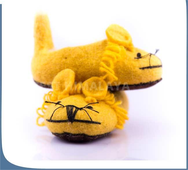 รองเท้ากีฬาเด็กผู้หญิง Himalaya คุณภาพดีจากเนปาล ทำมือจากผ้าขนสัตว์เนื้อนุ่ม ลายสิงโต สีเหลือง ด้านในบุด้วยผ้าฝ้าย พื้นรองเท้าทำจากยาง