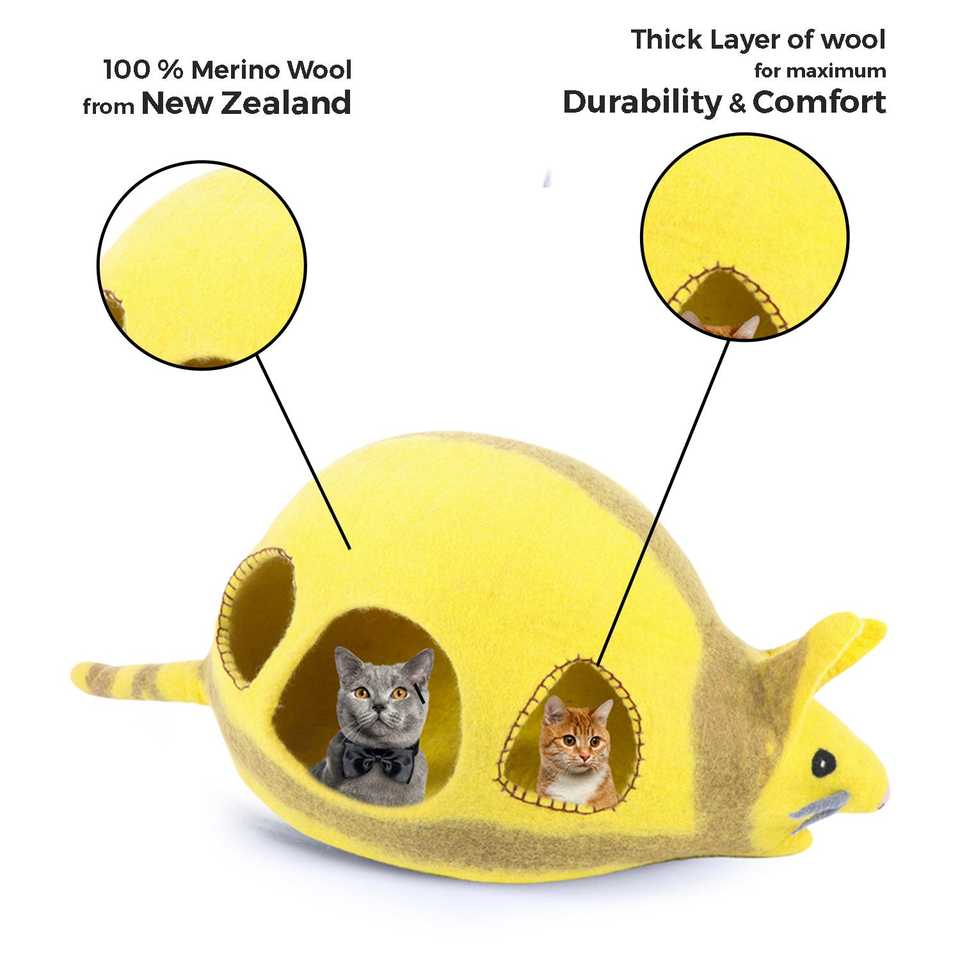 Feltandwool Windowed Wool Felt Small Cat House in Mouse Shape 1000g Pet Furniture