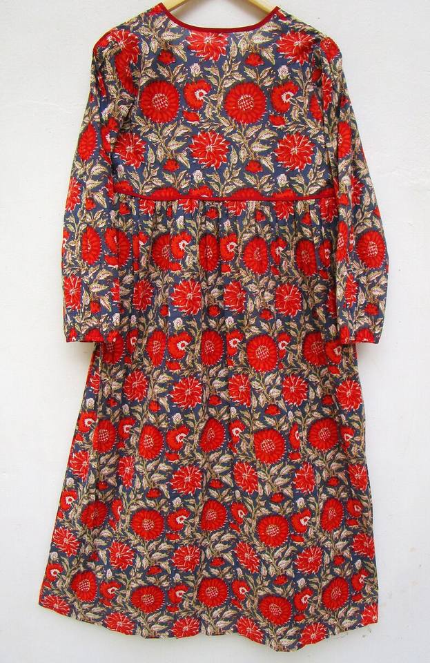 เดรสยาวถึงเข่าลายดอกไม้ของผู้หญิงชุดเดรสลำลองฤดูร้อนมีกระดุมแขนยาวเอวธรรมชาติ