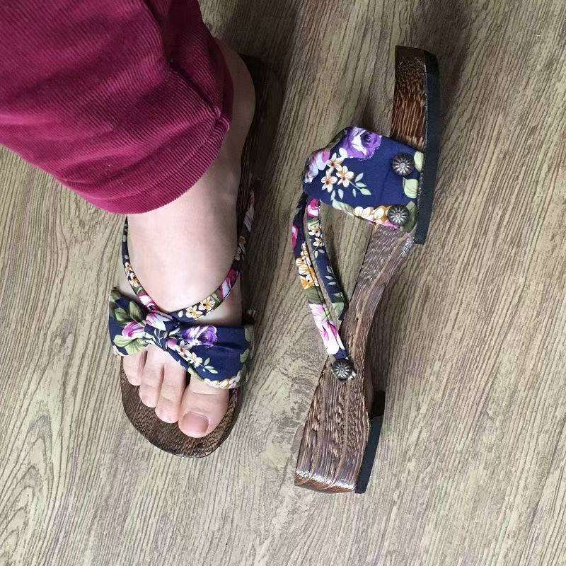 รองเท้าสลิปออนแบบแมรี่เจนสำหรับผู้หญิง ระบายอากาศได้ดี กันลื่น พื้นไม้ ลายดอกไม้ญี่ปุ่น เหมาะสำหรับใช้ในบ้าน